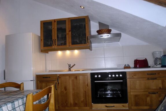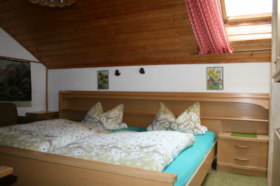Die gemütliche Ferienwohnung im Dachgeschoss mit zwei separaten Schlafzimmern und jeweils einem Doppelbett ist mit Bettwäsche ausgestattet. Die voll eingerichtete Küche mit großem Kühl-/Gefrierschrank bietet direkten Zugang zum Balkon mit herrlichem Blick auf die Berge. Im hauseigenen Garten bestehen Sitzgelegenheit und ein Grillplatz zur Mitbenutzung. Gegen Aufpreis kann Frühstück, Getränke- oder Brötchenservice dazugebucht werden. Die Ferienwohnung eignet sich für maximal 4 Personen. Das zweite Schlafzimmer liegt außerhalb der Ferienwohnung, aber im gleichen Stockwerk und sind mit Balkon verbunden!