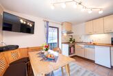 • komplett ausgestattete Wohnküche mit Kühl-/Gefrierkombination