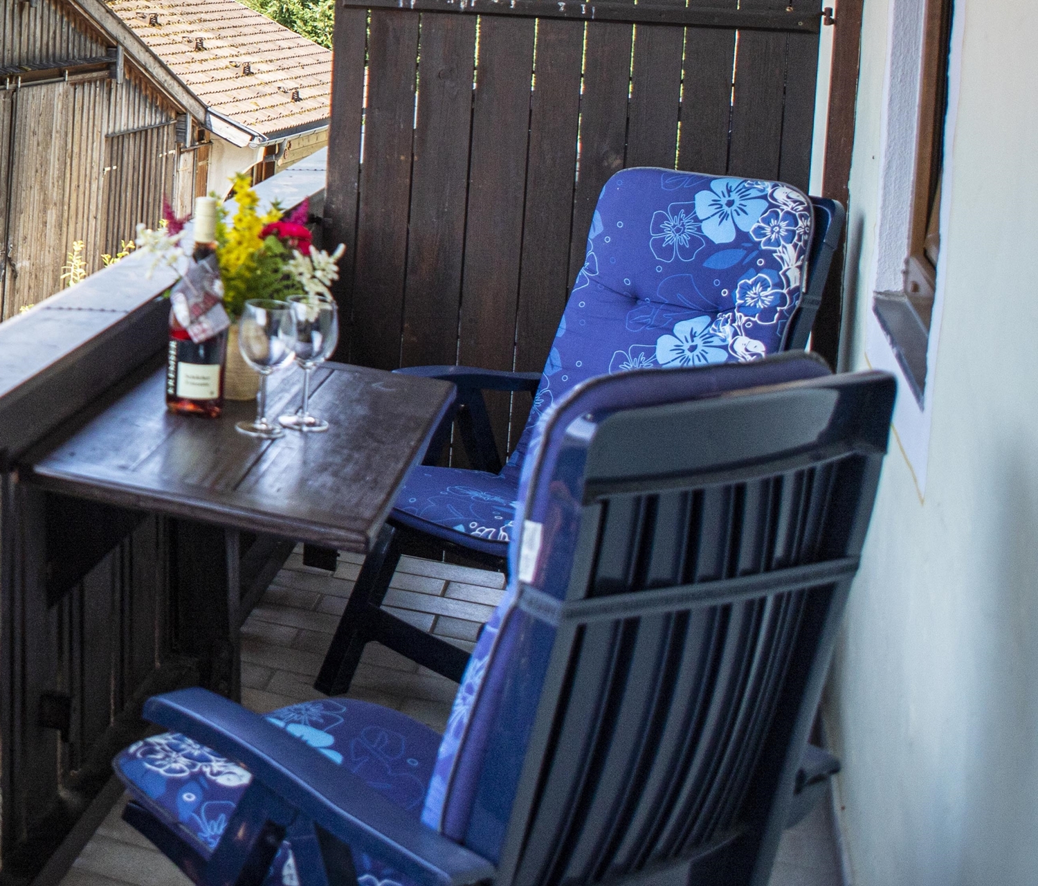 • süd- und ostseitiger Balkon mit Tisch und Liegestühle