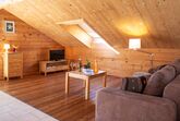 Die großzügig, helle und gemütliche mit Mondphasenholz und Lehm gestaltete 64 qm Nichtraucher Ferienwohnung im Dachgeschoss mit schönem hohen Sichtdachstuhl, Süd-Balkon und Panoramablick auf die Kampenwand, lädt durch ihre Naturholzmöbel mit Wohlfühlambiente, Fußboden- und Wandheizung zum Erholen ein. Genießen Sie Ihre Auszeit in einem großen Wohnraum mit offener Küche und Essplatz. Der Wohnbereich mit Schlafcouch, SAT-Flat-TV, Internetanschluss, kostenloses W-LAN, die voll ausgestattete Küche mit 4-Platten-Cerankochfeld/Backofen, Geschirrspüler, Kühlschrank/Tiefkühlfach, Moccamaster Kaffeemaschine, Wasserkocher und Toaster. Zwei separate Schlafzimmer: Ein Schlafzimmer mit einem Doppelbett und das zweite Schlafzimmer mit einem Einzelbett mit Ausziehbett. Das Ausziehbett ist in Form einer Unterschublade gestaltet und lässt sich einfach ausziehen. Badezimmer mit Natursteindusche, Fußboden- und Wandheizung, WC und Föhn. Bettwäsche und Handtücher sind vorhanden.