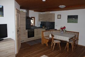 Die Wohnung liegt im Erdgeschoss mit eigener Terrasse und freiem Blick auf die umgebenden Wiesen und Berge. Entspannen Sie nach einem abwechslungsreichen Urlaubstag in der Abendsonne.