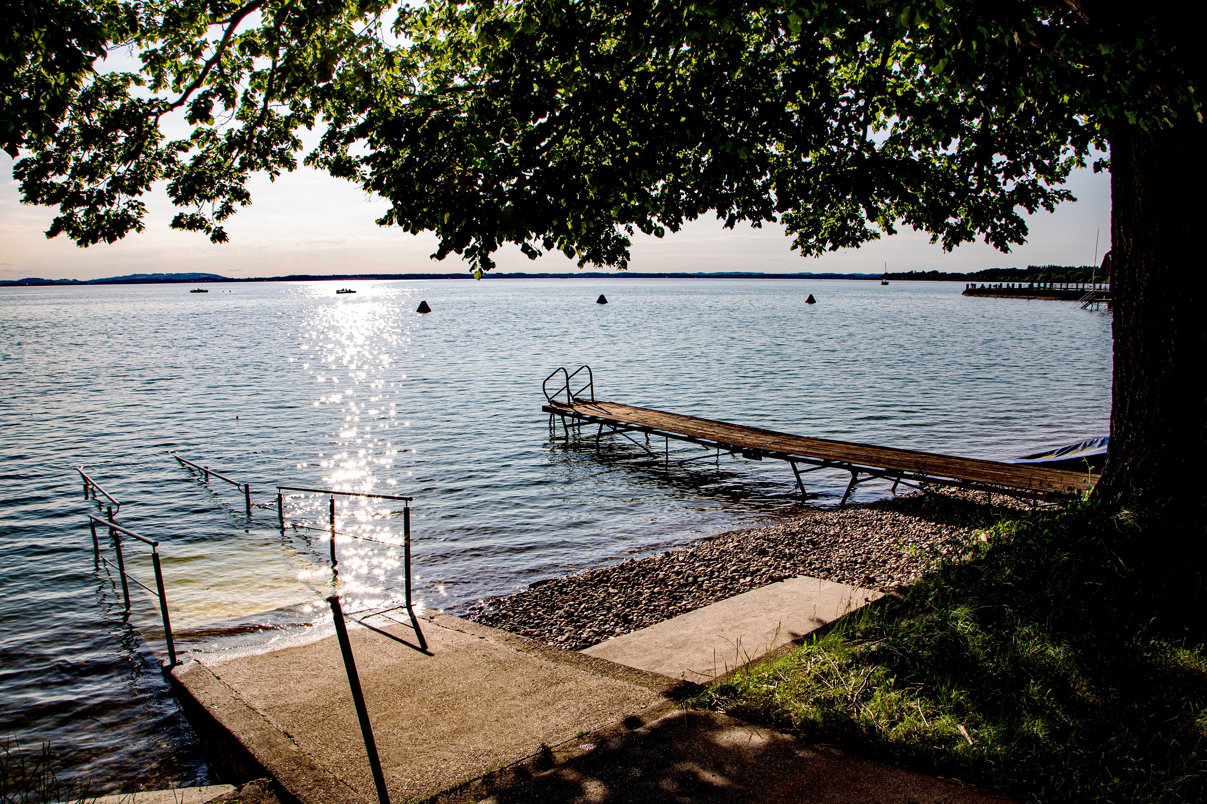 Direkt am See gelegen mit freiem Zugang zum Strandbad begrüßen wir Sie in unserer 100m² Wohnung mit separatem Eingang, gemütlich eingerichtetem Wohnzimmer, einer extra Küche, 2 separaten Schlafzimmern und einem Bad mit WC. Gerne können Sie auf Anfrage ein Kinderbett und einen Hochstuhl von uns zur Verfügung gestellt bekommen. Vom Südwest Balkon mit See und Bergblick werden traumhafte Sonnenuntergänge wahr.