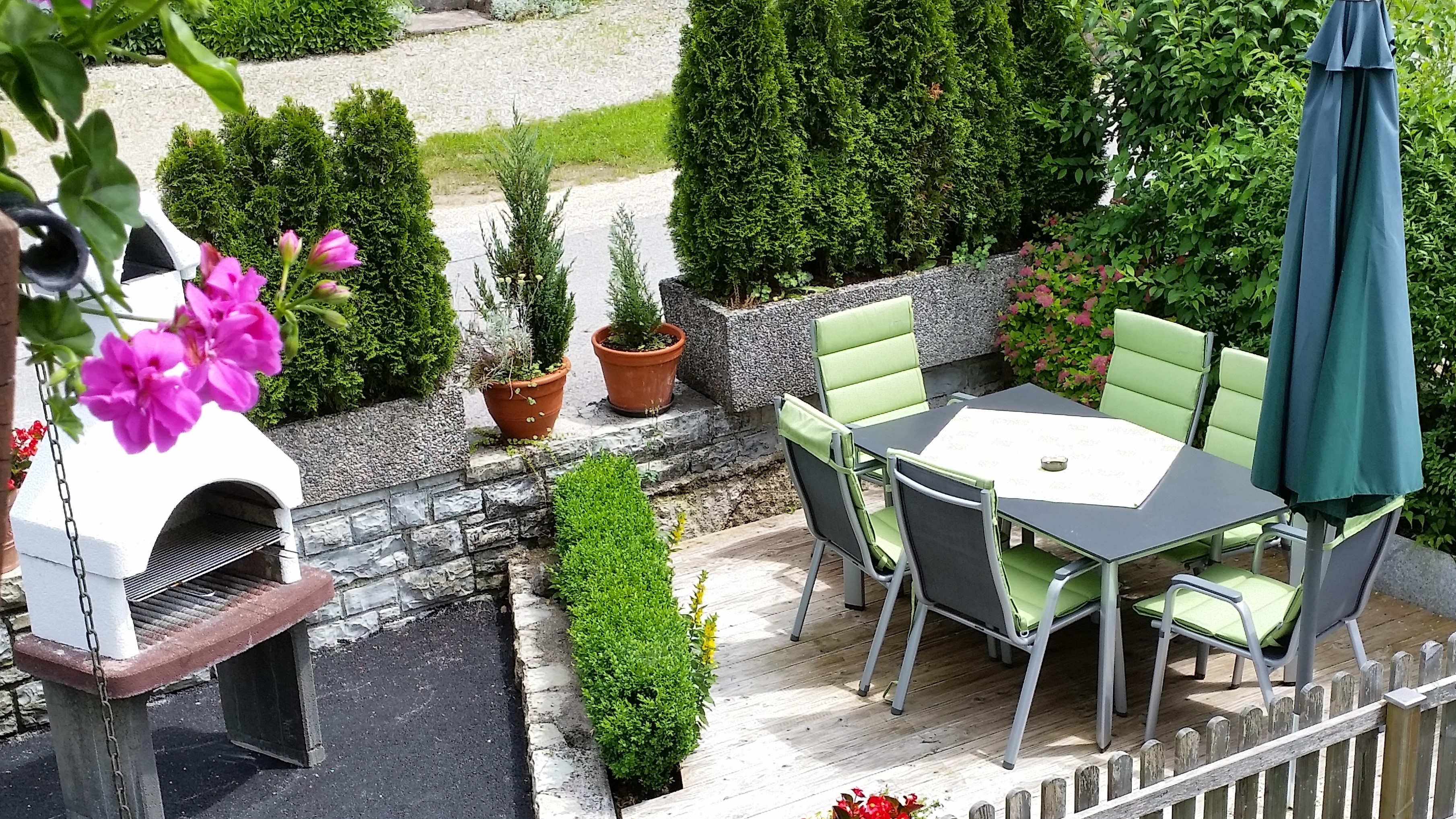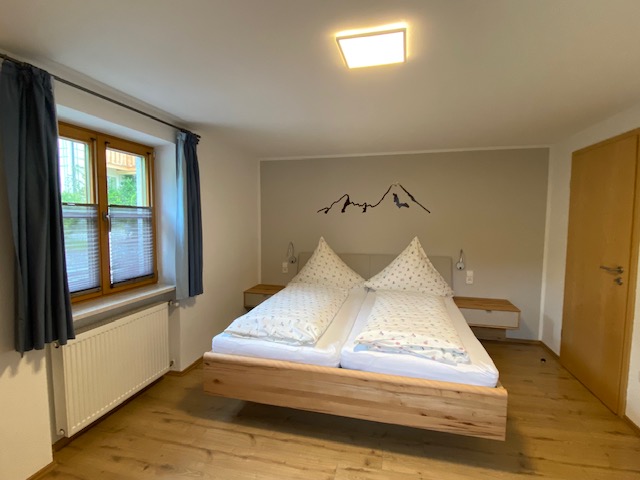 Diese gemütlich eingerichtete Nichtraucher-Ferienwohnung bietet Platz auf 37 qm und liegt im 1. Stock, hat aber einen ebenerdigen Eingang durch die Rückseite des Hauses. Sie ist ausgestattet mit 1 separaten Schlafzimmern, einer Wohnküche mit gut ausgestatteter Küchenzeile, Essecke, Sitzgruppe und Flachbild-TV, einem Bad mit Dusche/WC. Auf dem sonnigen Balkon genießen Sie einen herrlichen Blick auf den Watzmann.
