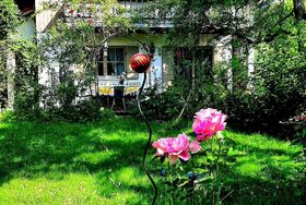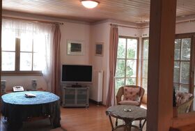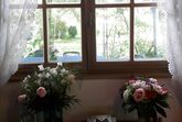 Komfortables, individuell eingerichtetes Nichtraucher-Ferienhaus mit großem Südostbalkon mit herrlichem Bergblick in sonniger östlicher Ortrandlage. Im Erdgeschoss befindet sich ein großzügiger, heller Wohnraum mit Schwedenofen, eine vollausgestattete Küche, ein Badezimmer mit großer Wanne und ein Schlafraum mit Doppelbett. Alle Räume verfügen über eine Terassentür zum Garten und Schallschutzfenster. Das Obergeschoss verfügt über einen großen Wohnraum mit Schlafsofa (für 2 Personen), Balkon, Wohnküche mit Essplatz, zwei gemütliche Schlafräume mit französischen Betten und Duschbad. Keine Haustiere erlaubt. Das Erdgeschoss ist Barrierefrei.