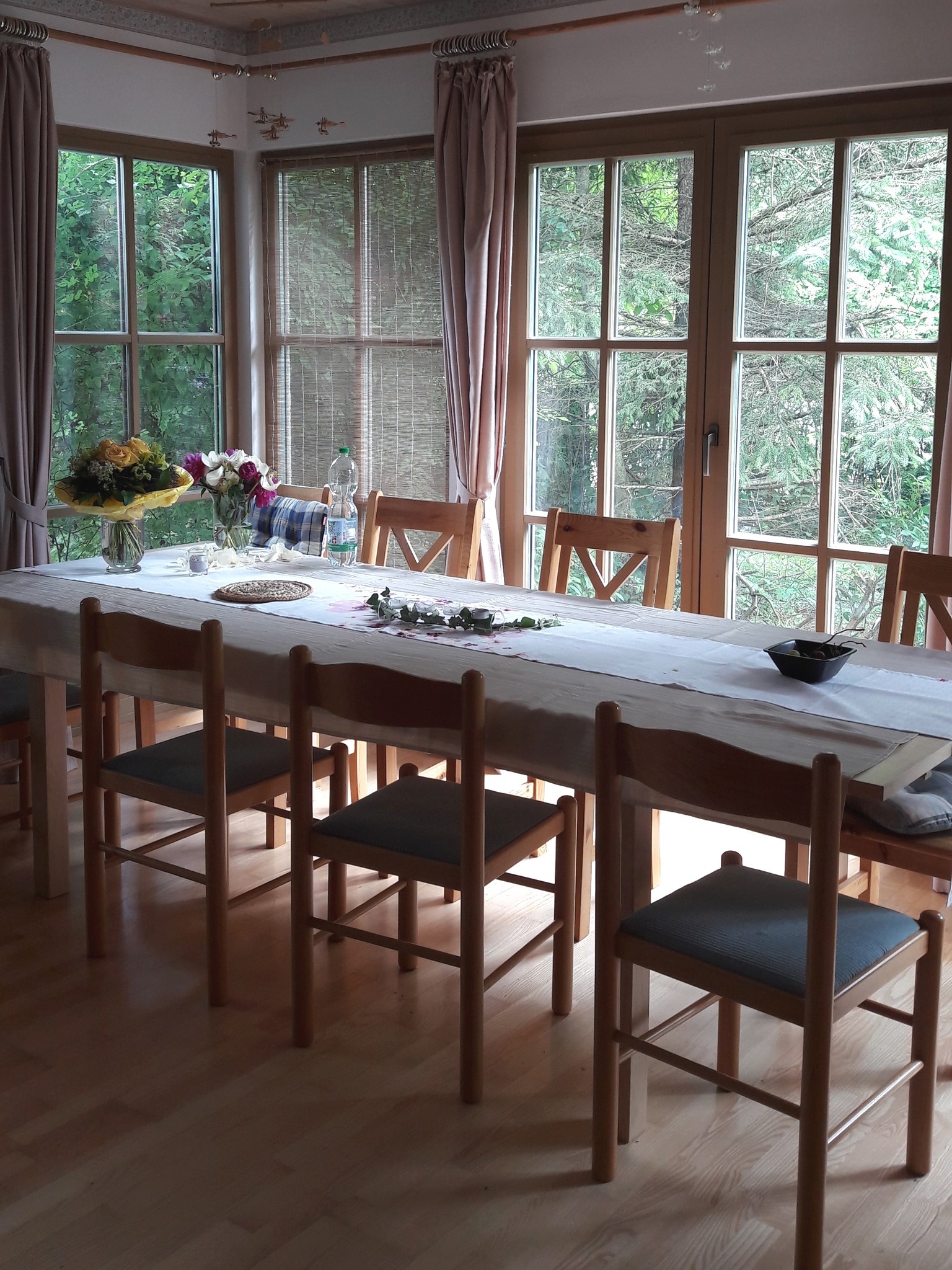 Komfortables und individuell eingerichtetes Ferienhaus in Ortsrandlage. Erd- und Obergschoss mit Terasse bzw. Balkon mit freiem Bergblick und Blick in das Moornaturschutzgebiet Kendlmühlfilzen, sowie Nähe dem Museum Salz und Moor. Das Haus verfügt über einen großen Garten mit Gartenmöbel, Parkplatz für 3 Autos auf dem Grundstück, sowie ein Carport. Schräg gegenüber ist ein idealer Ausgangspunkt für Bergwanderungen, Rad- und Mountainbiketouren (direkt am Bodensee-Königsee-Radweg gelegen), Nordic Walking, Wassersport, Langlaufen, Skifahren und Rodeln. 2 Paar Langlaufski können ausgeliehen werden. Wir beraten Sie gerne. Die An-, bzw. Abreise kann auch nach Absprache erfolgen.