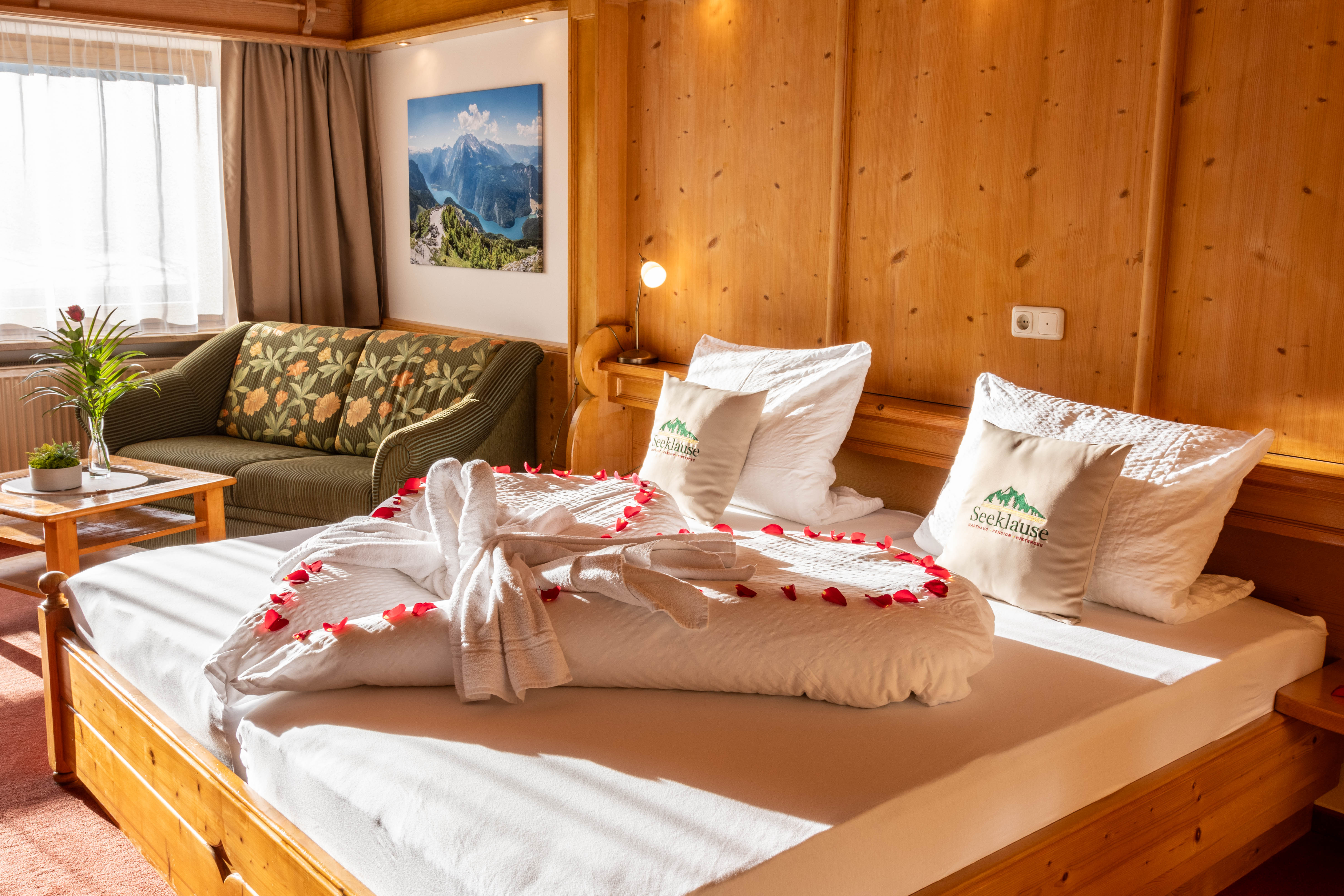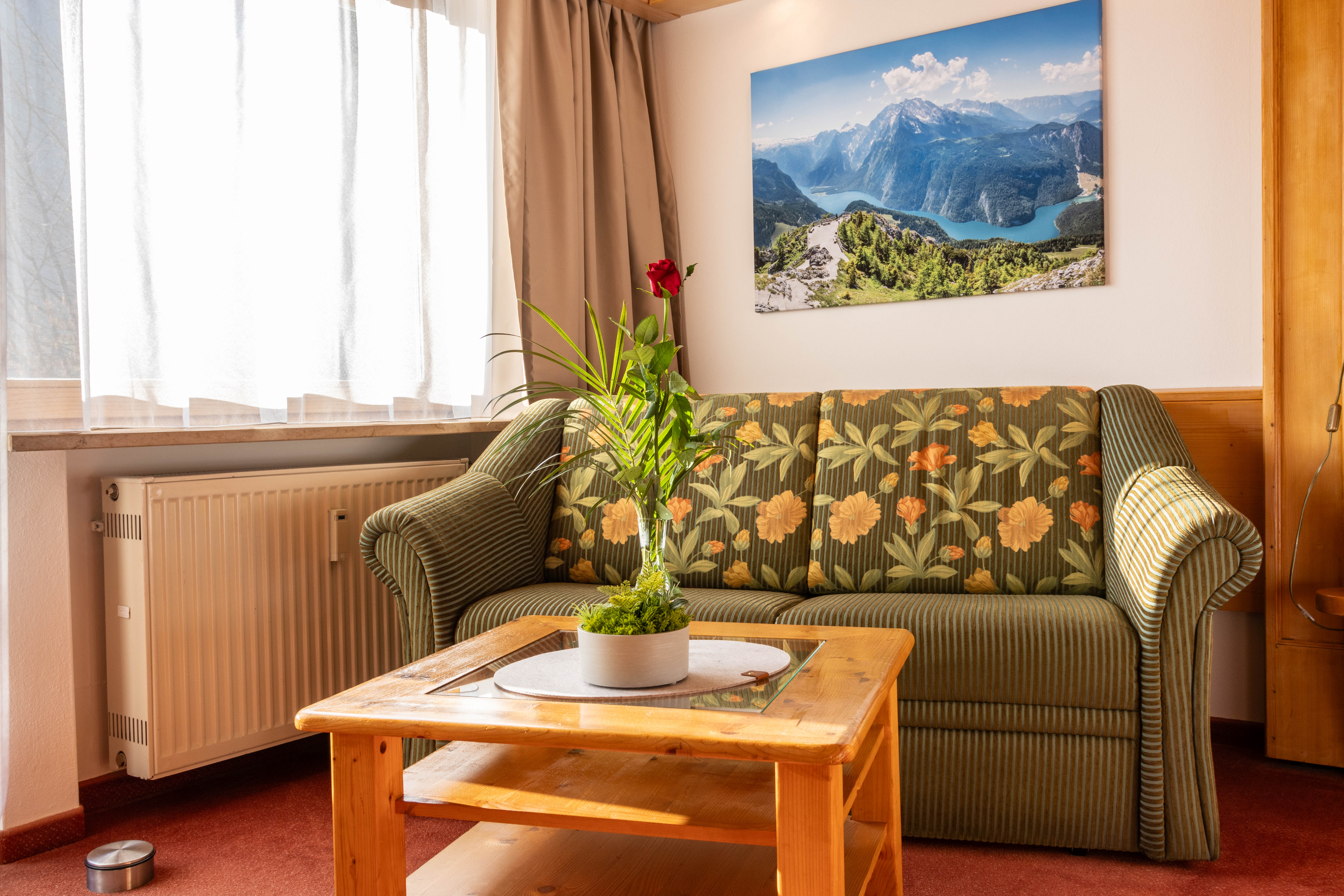 In unserer familiär geführten Hotelpension erwarten Sie geräumige, liebevolle und komfortable 7 Doppelzimmer mit einer Größe von ca. 36 qm. Alle Doppelzimmer haben Bad mit Dusche/WC, Föhn, Hotelkosmetik, Digital-Sat-Flachbild-TV mit 12 Programme, kostenloser W-Lan-Zugang, Safe, Wasserkocher mit Tee und Kaffee, 6 Zimmer mit Südbalkon alle Doppelzimmer mit herrlichem Blick auf den Hintersee, Hochkalter und Berchtesgadener Alpen. Pension, Balkone und Gaststube sind Nichtraucherzonen. Rauchen ist nur vor der Pension und auf der Terrasse gestattet. Kostenfreie Internetstation und W-Lan stehen zur Verfügung