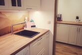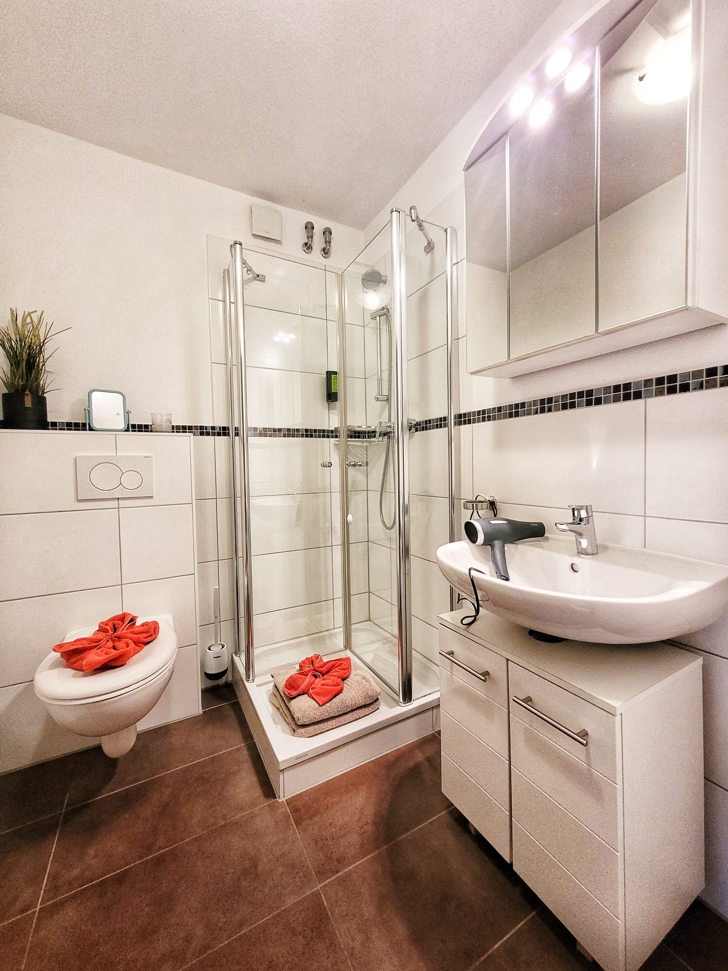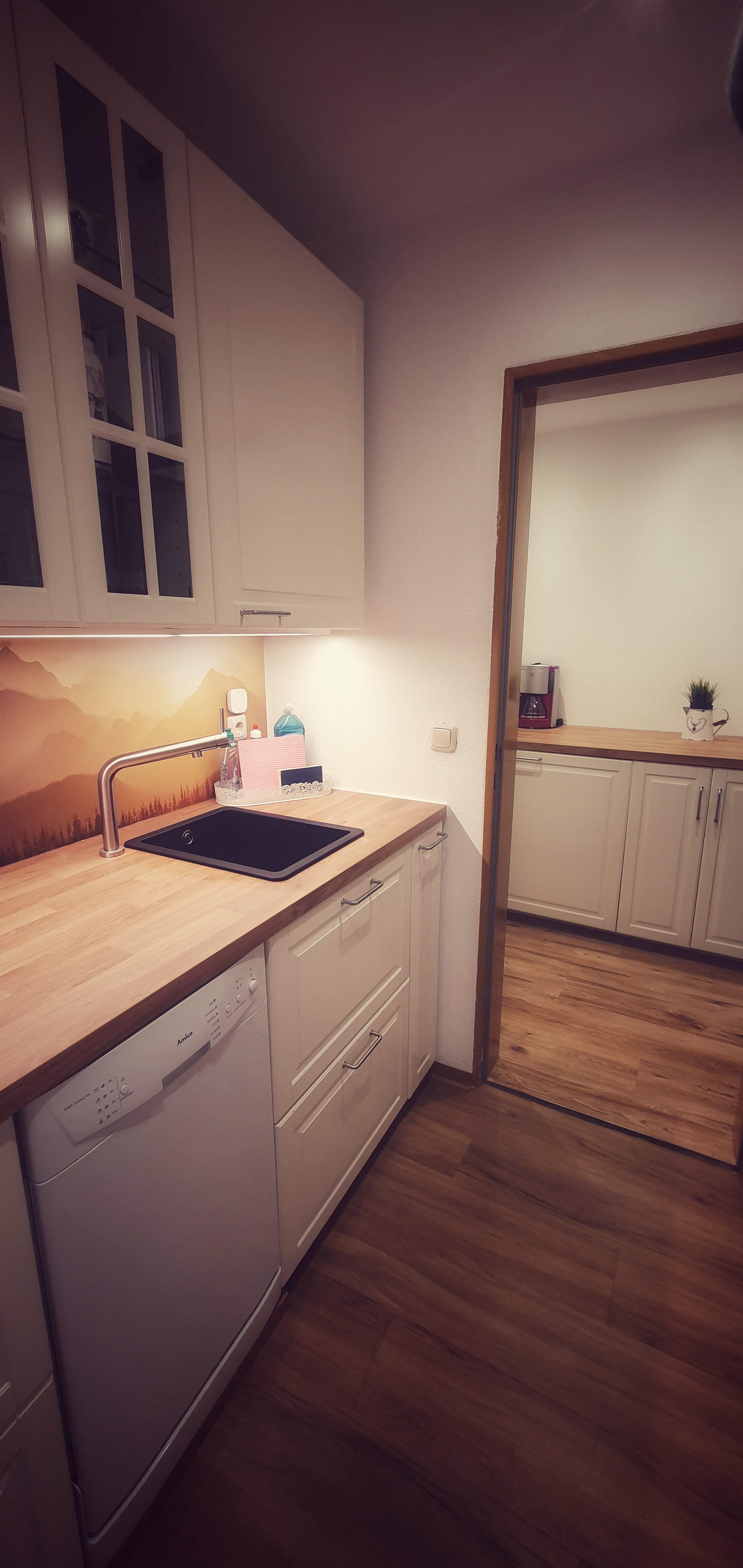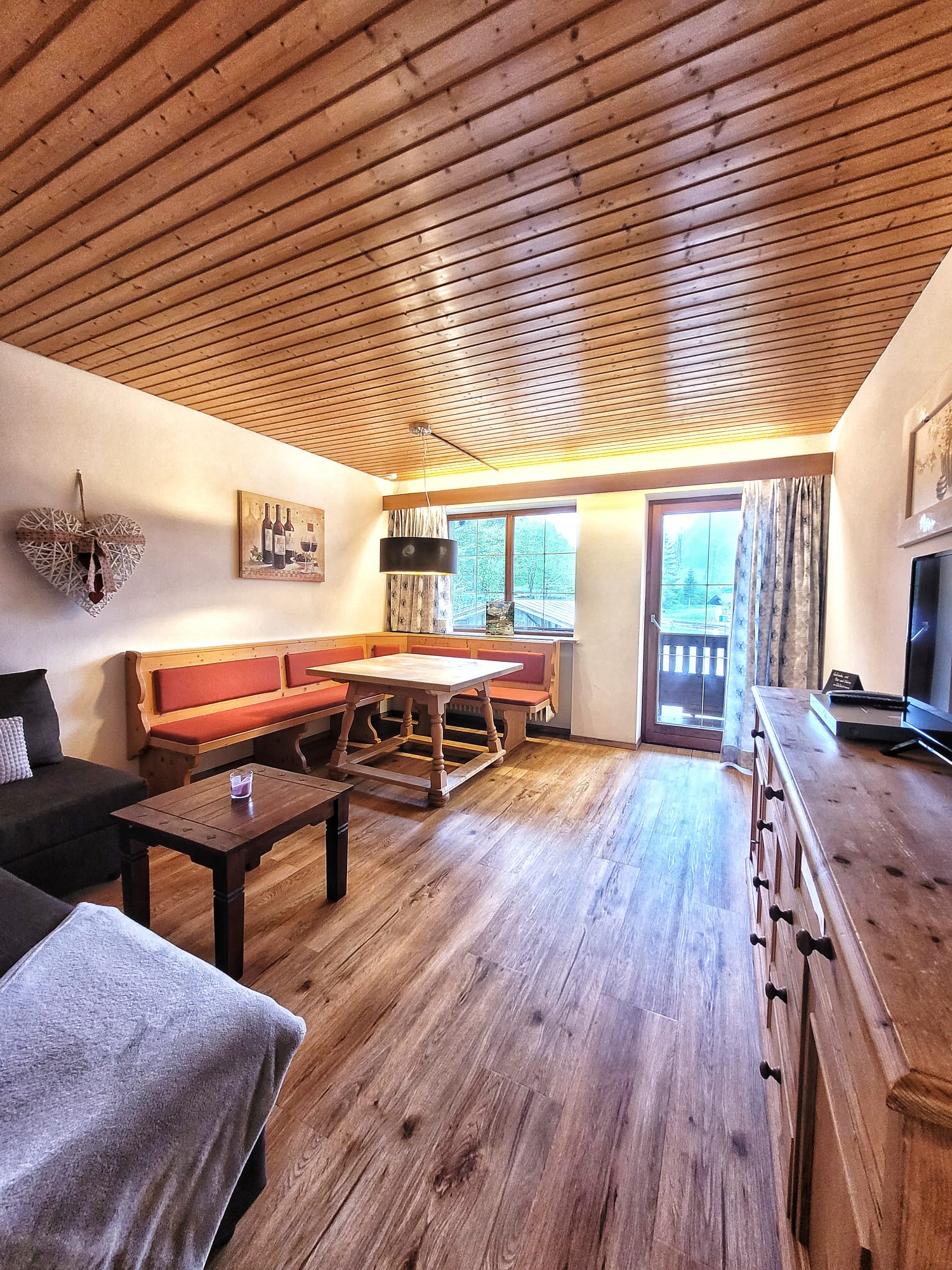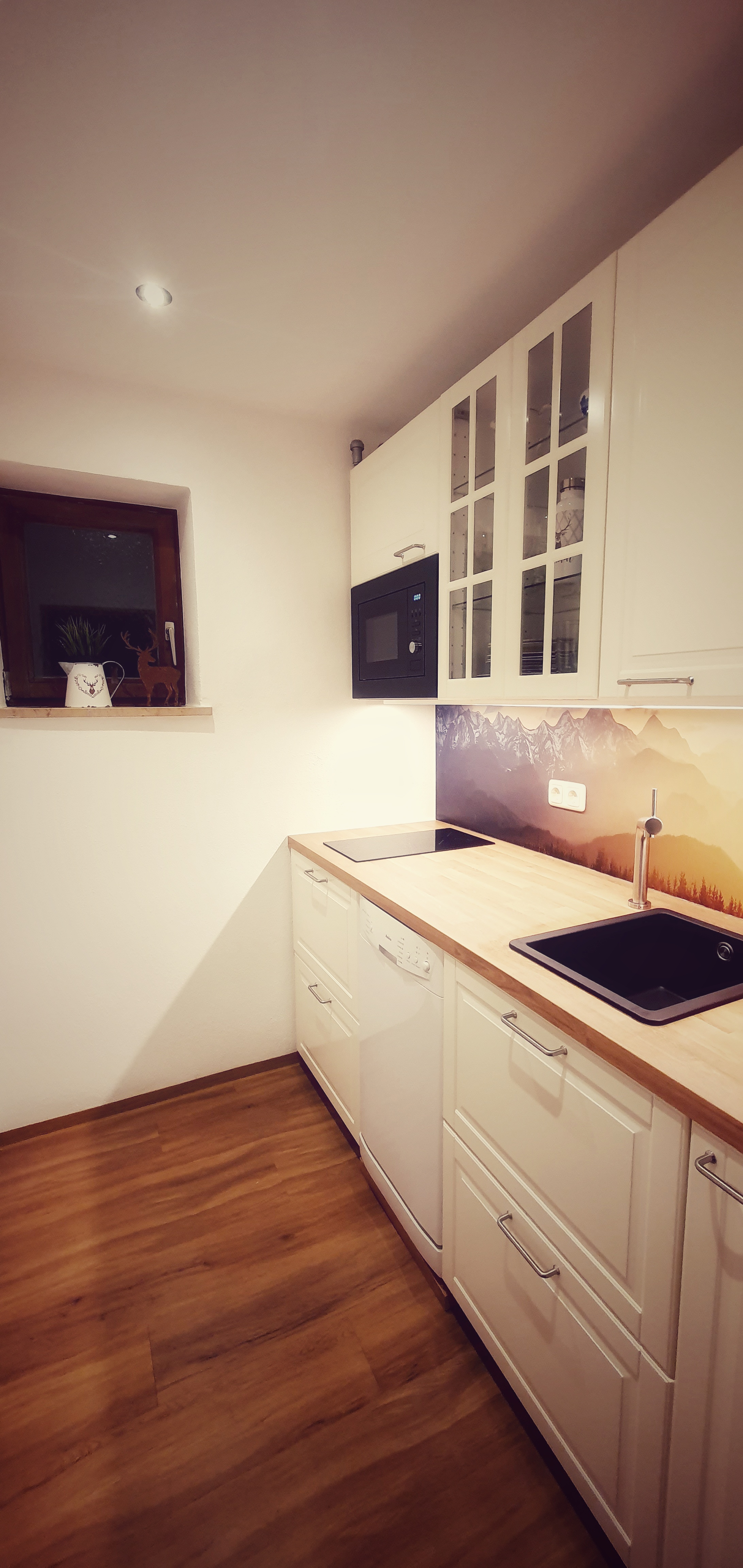 Nichtraucher-Ferienwohnung Enzian im Obergeschoss mit großem Balkon zur Westseite für 2-3 Personen, 55 qm, modern eingerichtet, Wohnzimmer mit Schlafcouch, große Essecke für 4 Pers., Smart TV, kostenloses WLAN,Bluetooth Musikanlage, Schlafzimmer mit Komfortbett, Matratzen mit unterschdl. Härtegraden, Liegehöhe 54 cm, , Küche ausgestattet mit Induktionsherd, Geschirrspüler, Mikrowelle, Filterkaffeemaschine, Toaster, kleiner Backofen, Wasser- und Eierkocher, Badezimmer mit Fön, Dusche und WC, Hygieneartikel wie Shampoo, Toilettenpapier und Seife vorhanden.