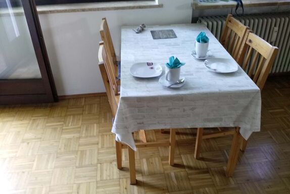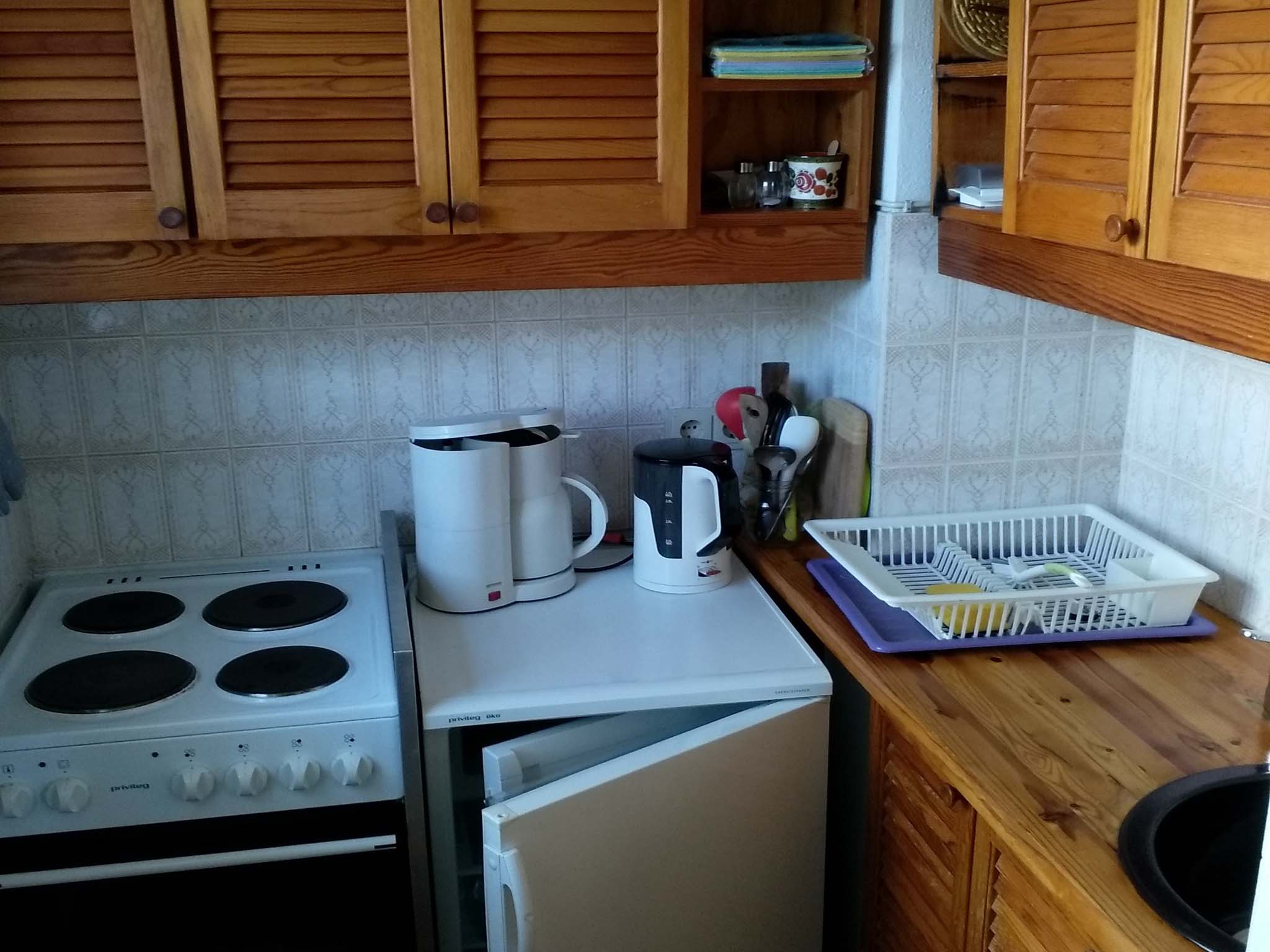 Die 35 qm große Ferienwohnung mit kleiner vollausgestatteter Küche und Bad (Badewanne) ist renoviert/ möbliert. Die Wohnung verfügt über einen wunderschönen großen Westbalkon (Abendsonne). Für die ausklappbare Schlafcoach (160 x 200 cm) im Wohnbereich wird die Bettwäsche gestellt und wöchentlich gewechselt. TV mit Receiver ist vorhanden. Im Haus stehen Gemeinschaftswaschmaschinen und Trockner gegen eine geringe Gebühr zur Verfügung.