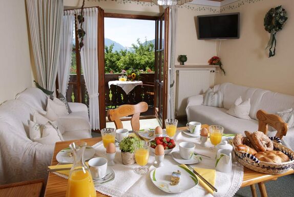 Die komfortable, ruhige, 4-Sterne Ferienwohnung mit einem separaten Schlafzimmern mit einem Doppelbett, einem großen Balkon mit großartigem Bergblick verfügt auch sonst über jeglichen Komfort für einen unbeschwerten Urlaub. Der Dorfplatz in Anger sowie der Höglwörther See sind fußläufig in wenigen Minuten erreichbar. Außerdem steht kostenfreies WLAN und ein Carport während des Aufenthaltes zur Verfügung.