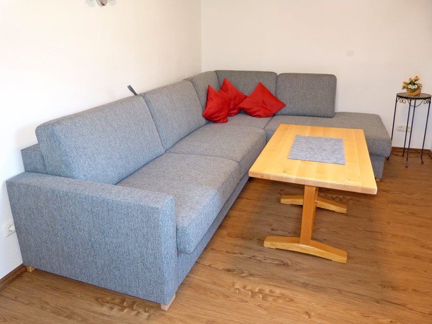Diese Wohnung liegt im Obergeschoss und verfügt über einen großen Südbalkon mit Sonne von morgens bis abends. In der Wohnküche befindet sich eine Einbauküche mit Geschirrspüler. Das Wohnzimmer, Schlafzimmer und das Bad sind komplett renoviert. Die Terrasse kann von unseren Gästen mitbenützt werden. Nichtraucher Wohnung.