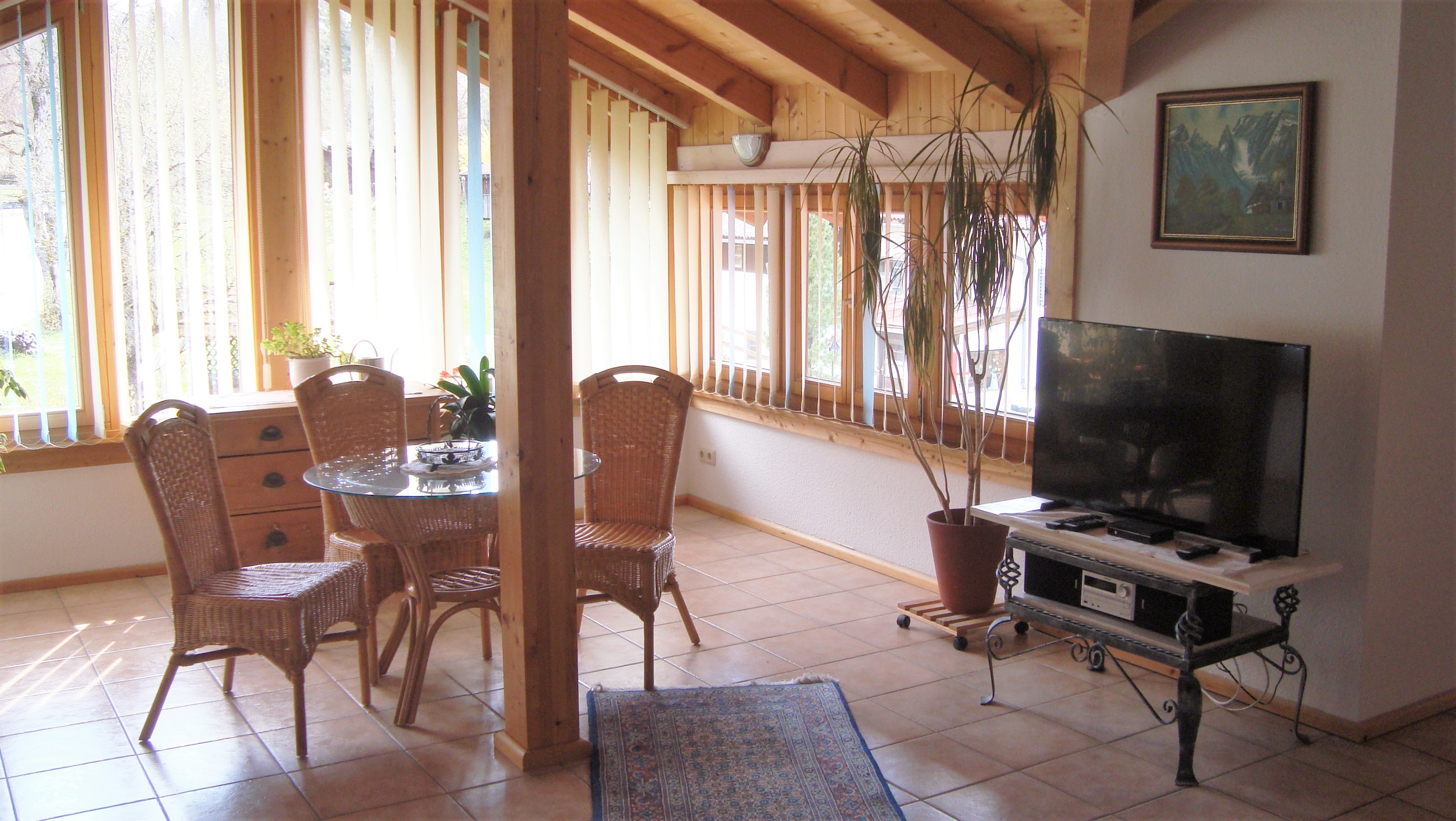 Eine nette, freundliche Wohnung in der 2. Etage. Ruhige Lage mit Hochgernblick. Neuwertige Ausstattung mit Wintergarten, Küchenbereich, Schlafzimmer und Du/WC. Separater Eingang.