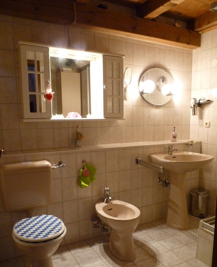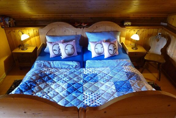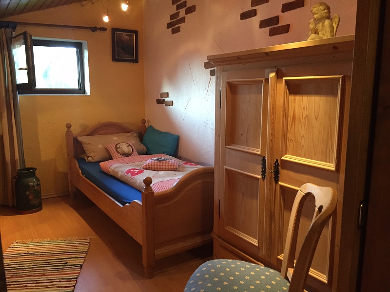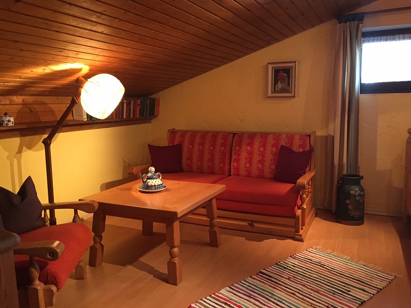 Gemütliches und liebevoll eingerichtetes 2-Zi.Appartment im urigen Hüttenstil in ruhiger, idyllischer und bevorzugter Wohngegend zwischen Chiemsee und Bergen. Die Ferienwohnung verfügt über eine Küchenzeile mit Essbereich, das Schlafzimmer ist mit Doppelbett, großen Kleiderschrank u. Bergblick, das Wohn-Schlafzimmer ist mit einem Einzelbett, Kleiderschrank, einer Schlafcouch und Sat-TV, WLAN ausgestattet und befinden sich Beide im DG. Das Bad verfügt über eine Dusche, ein Bidet und ein WC und befindet sich im OG.