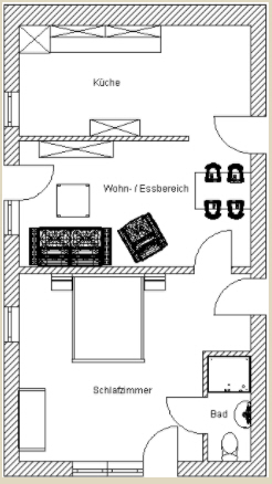 Für die 3. und eine ggf. 4. Person steht ein hochwertiges Schlafsofa (150 x 200) im Wohnzimmer bereit.