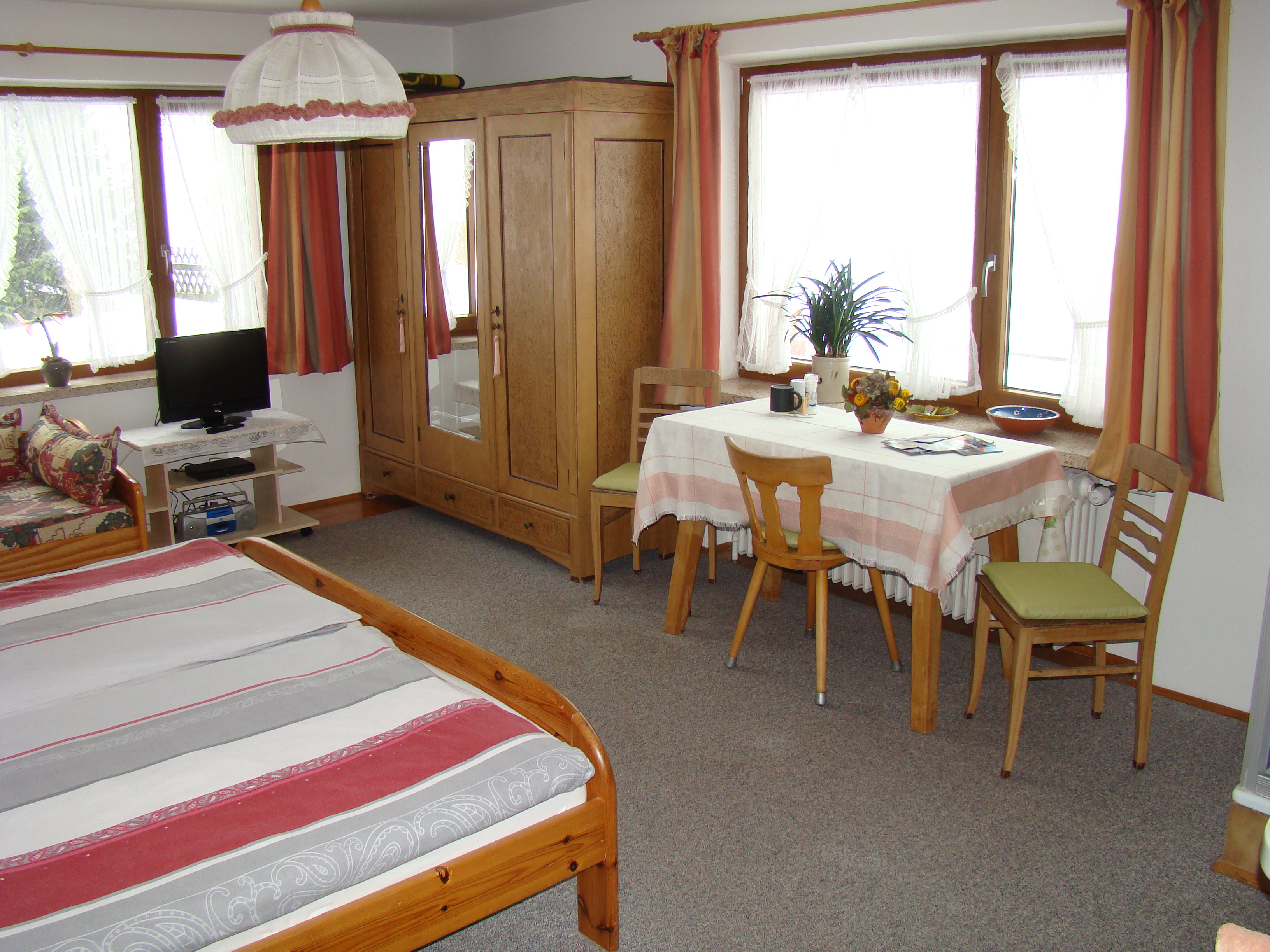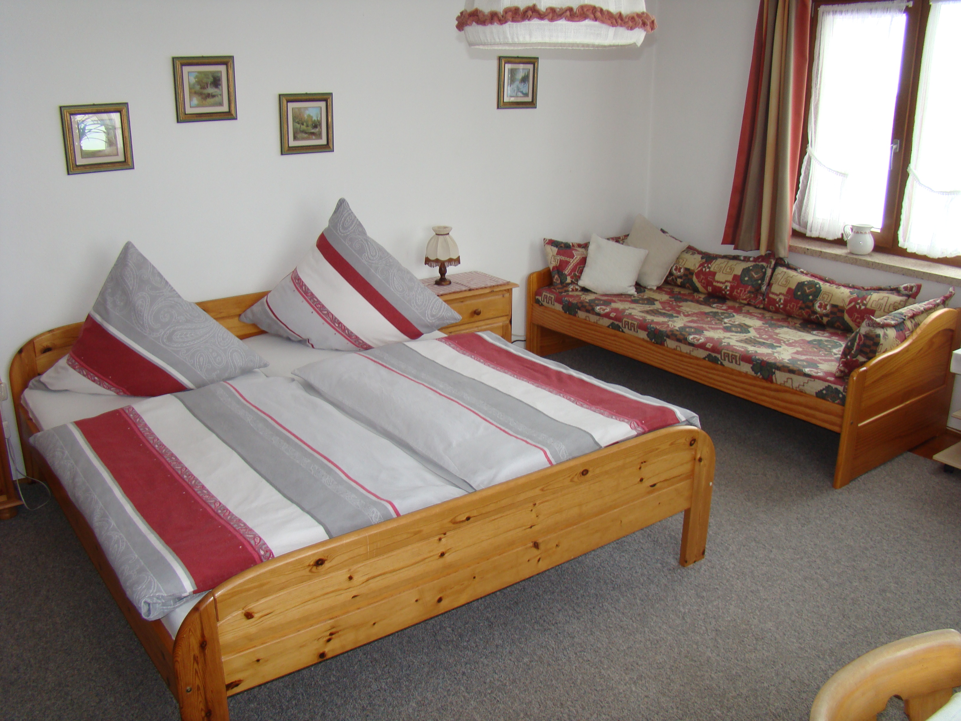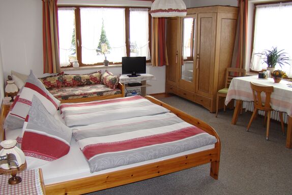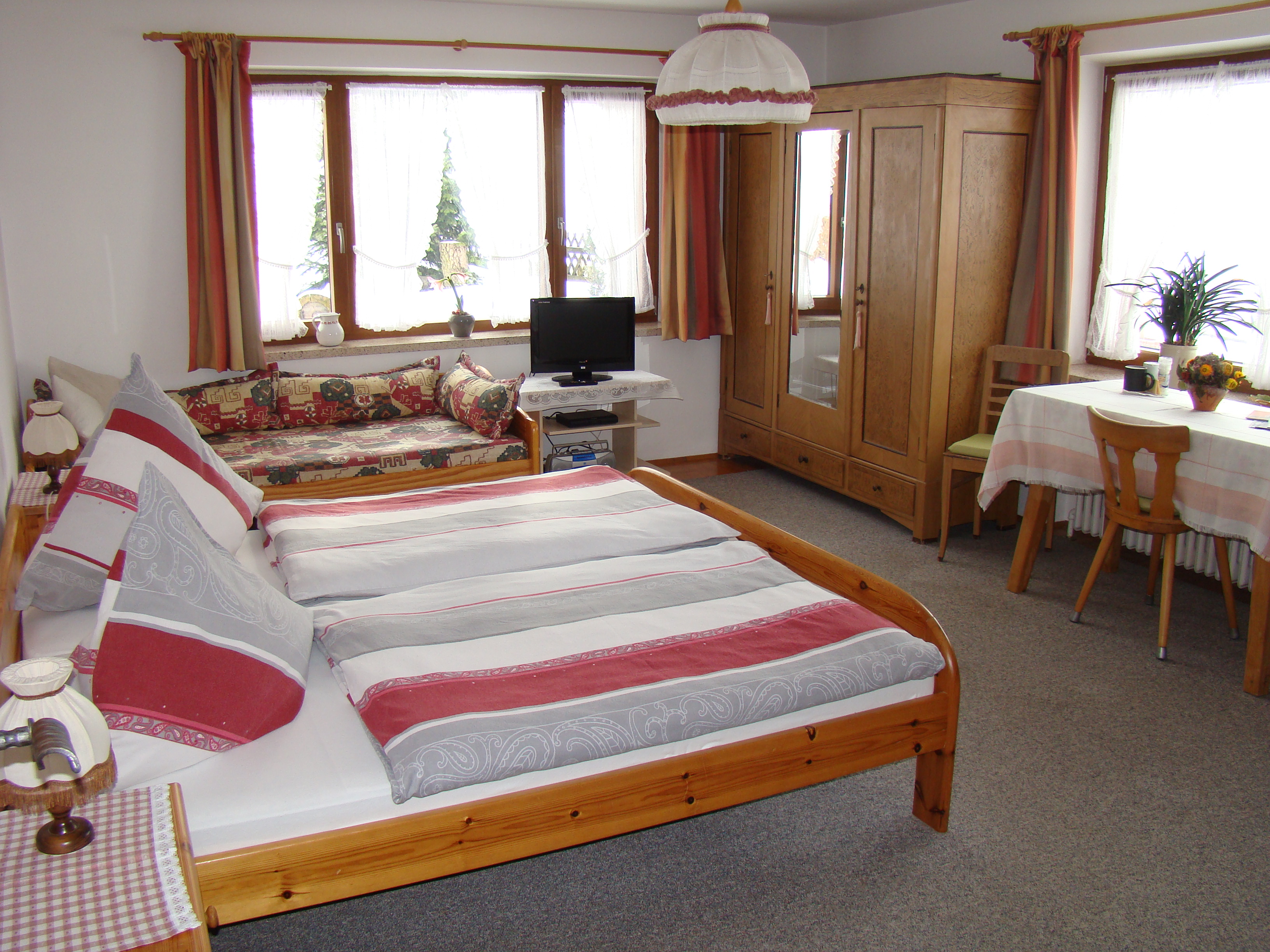 Das große, helle Gästezimmer befindet sich im Erdgeschoss unseres Gästehauses in Rossholzen am Samerberg.