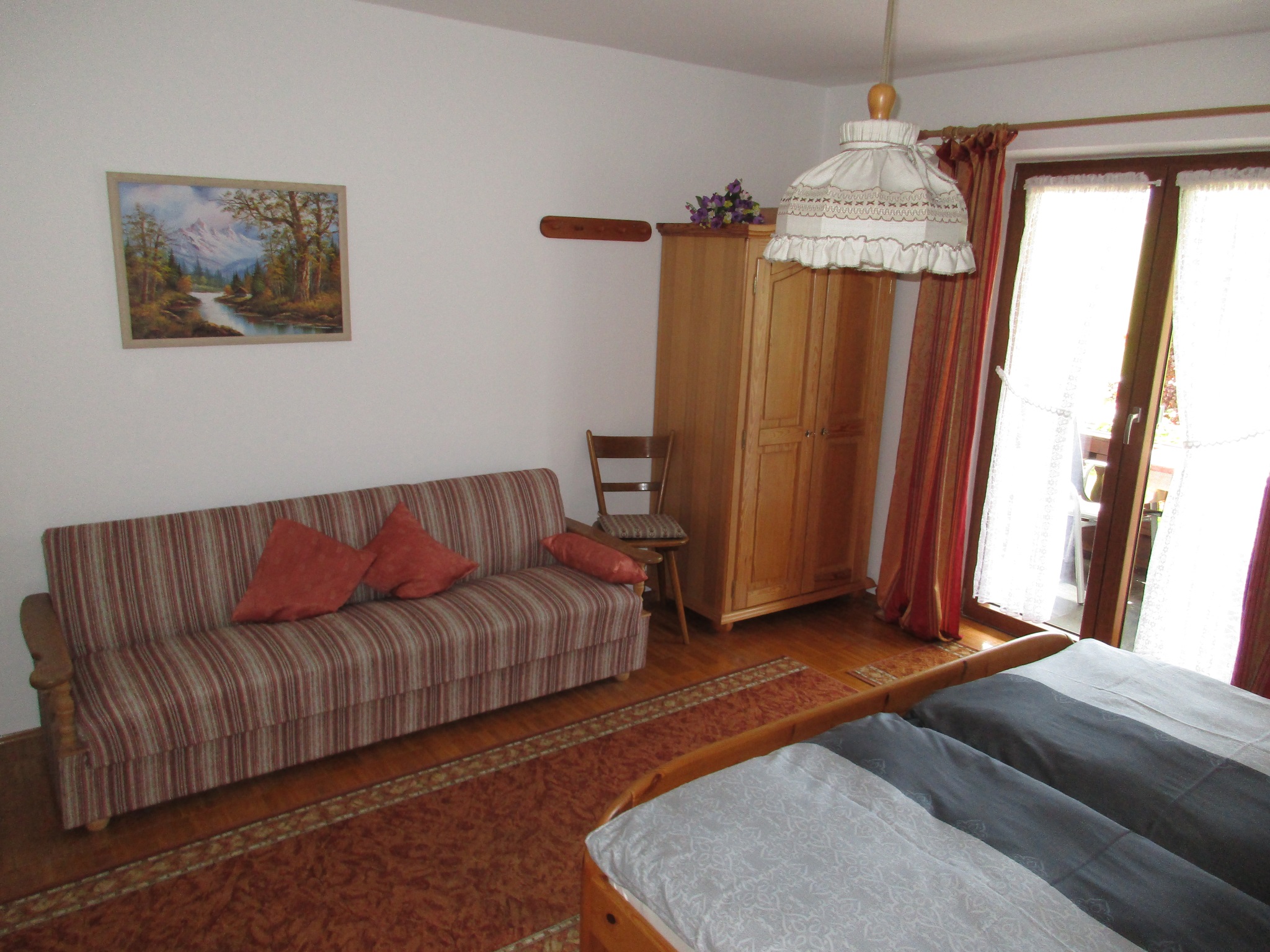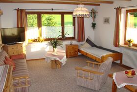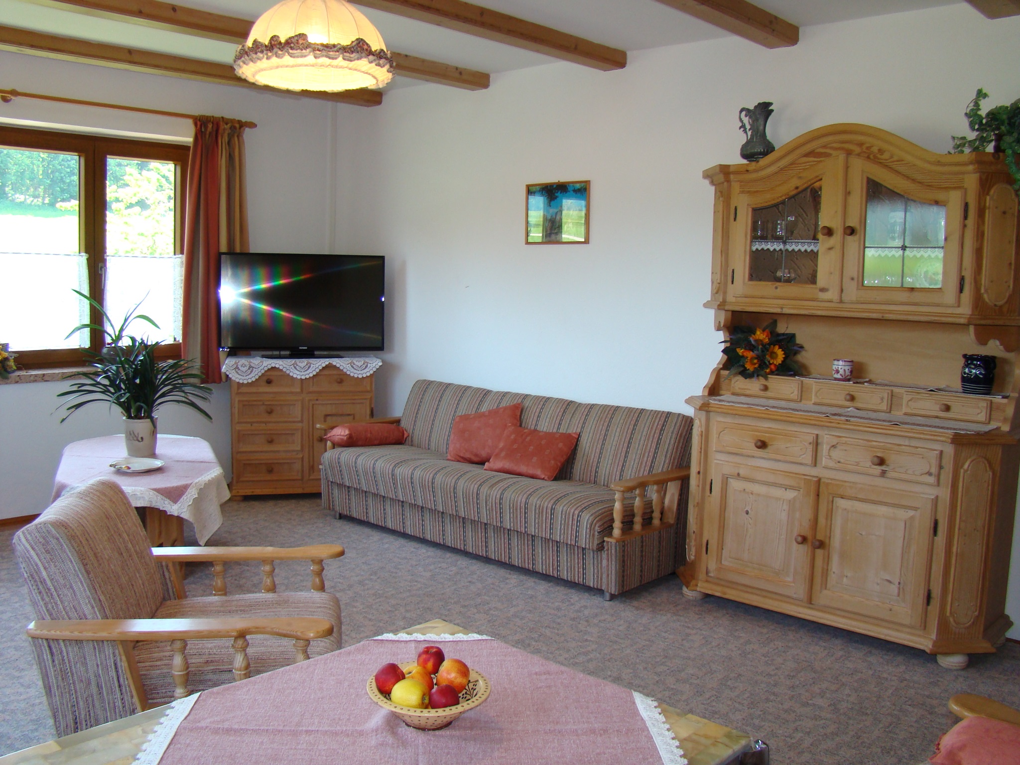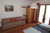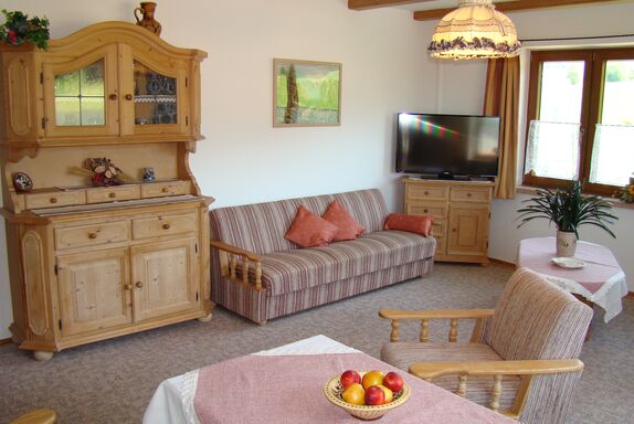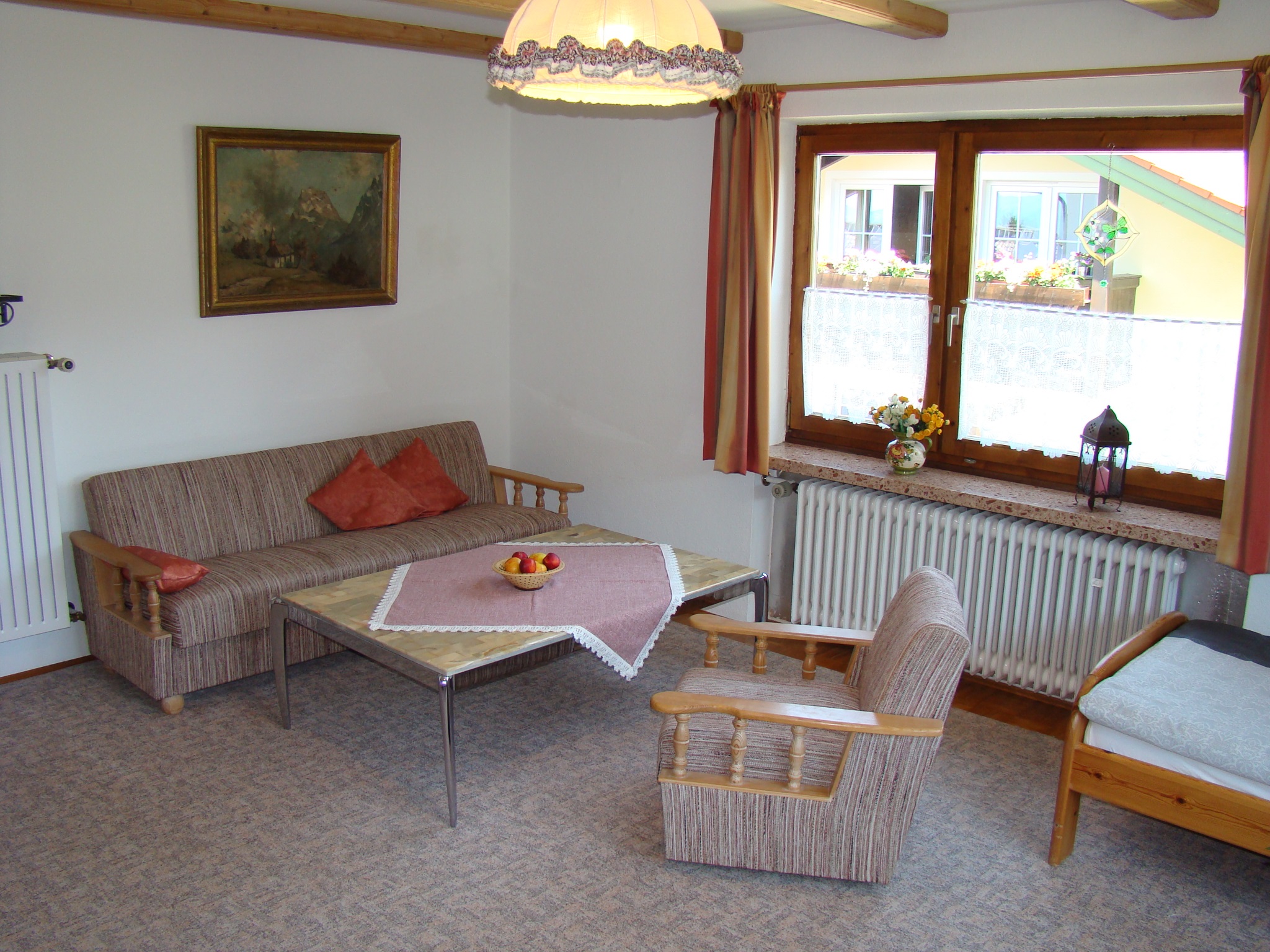 Die im Landhausstil eingerichtete Ferienwohnung für max. 6 Personen befindet sich im 1. Obergeschoss und verfügt über ein Schlafzimmer mit Südbalkon, ein Wohnschlafzimmer mit Sat-TV, eine Wohnküche mit Essecke und ein Badezimmer mit Badewanne sowie kostenloses WLAN (Wifi).