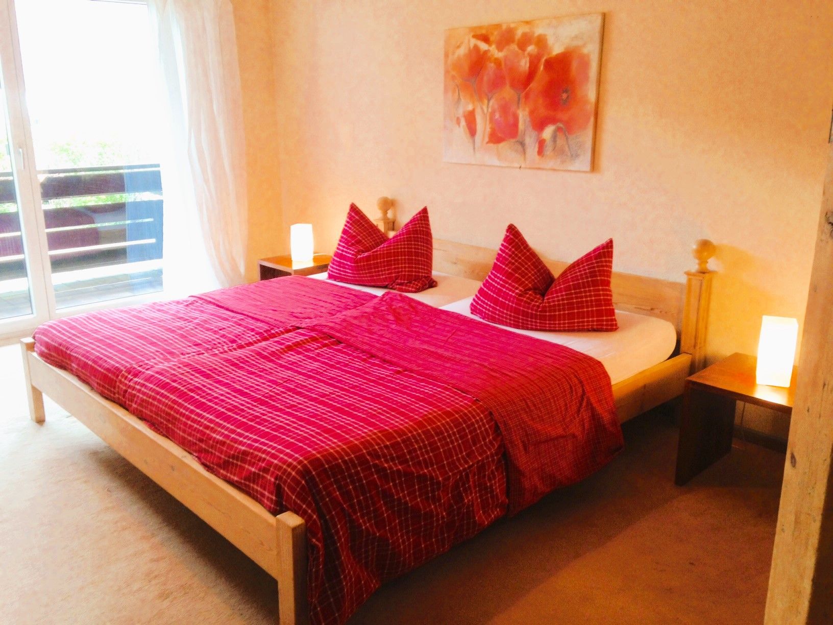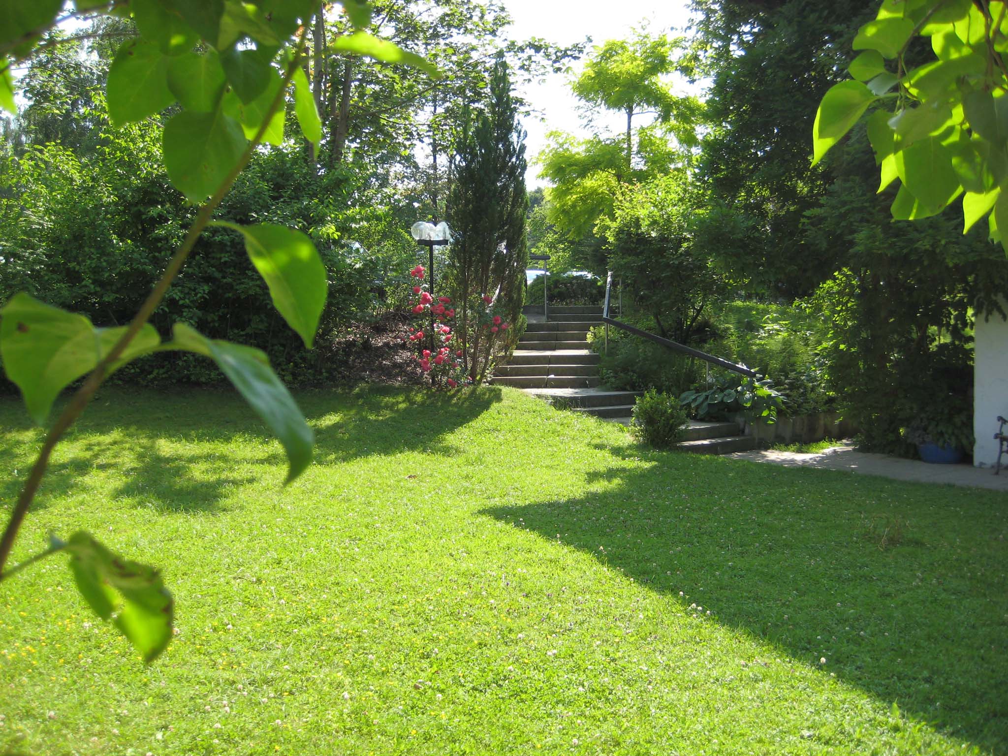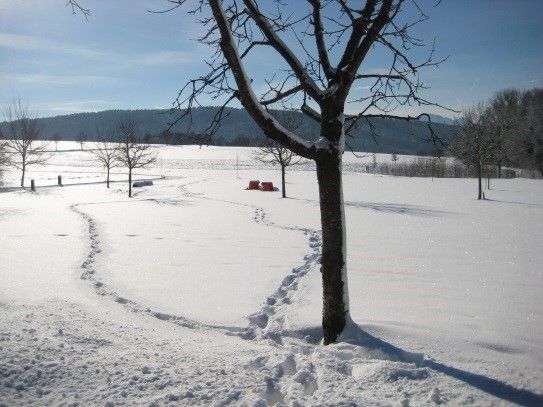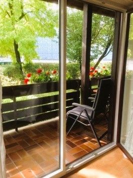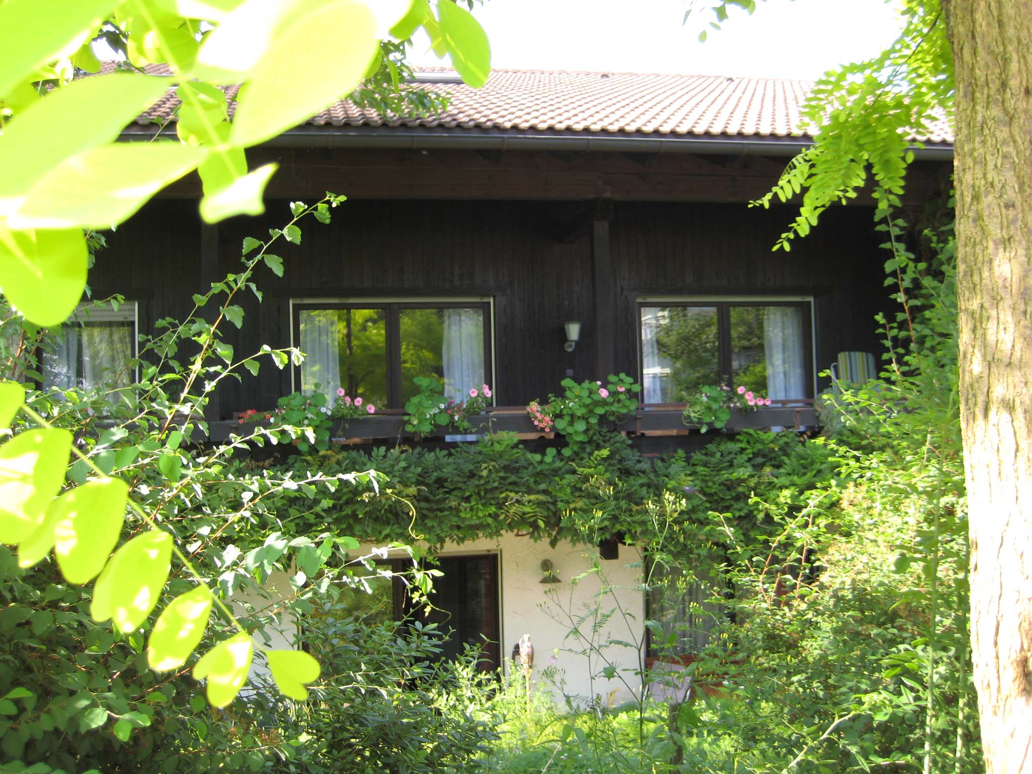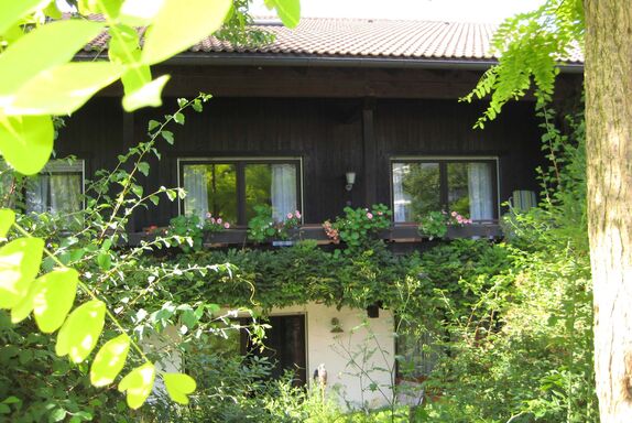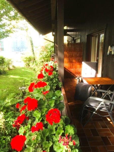 Gemütliche Nichtraucherferienwohnung mit großem Wohnzimmer. Komplett eingerichtete Einbaukücke, Backofen, Kühlschrank mit Eisfach, Bügelbrett und Bügeleisen, Handtücher und Bettwäsche. Das angegebene Schlafsofa im Wohnzimmer sind zwei einzelne Schrankbetten. Die Wohnung hat einen separaten Eingang und befindet sich in sonniger Südlage in einem ökologisch, naturnah angelegten, parkähnlichem Garten (3000 qm), mit Blumen rund ums Haus, der Sie an schönen Sommertagen zum Sonnen, oder Relaxen einlädt (Sonnenliegen vorhanden). Für laue Sommerabende steht Ihnen eine Grill zur Verfügung. Halten Sie Siesta auf dem großen und großzügig überdachten, freisitzähnlichen Balkon (möbliert), der von beiden Zimmern der Ferienwohnung zugänglich ist.