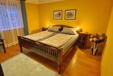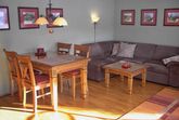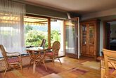 Nichtraucher-Ferienwohnung mit ca. 52 qm, Erdgeschoss1 Schlafzimmer mit Doppelbett, ggf. Kindergitterbett und Kinder-Reisebett; Wohnzimmer mit Ausziehcouch; separate Zweizeiler-Küche mit üblichen Zusatzgeräten; Dusche/WC; große, teilüberdachte Terrasse und Liegewiese.