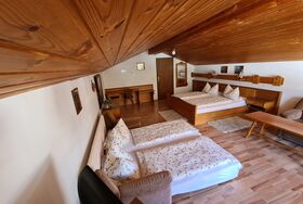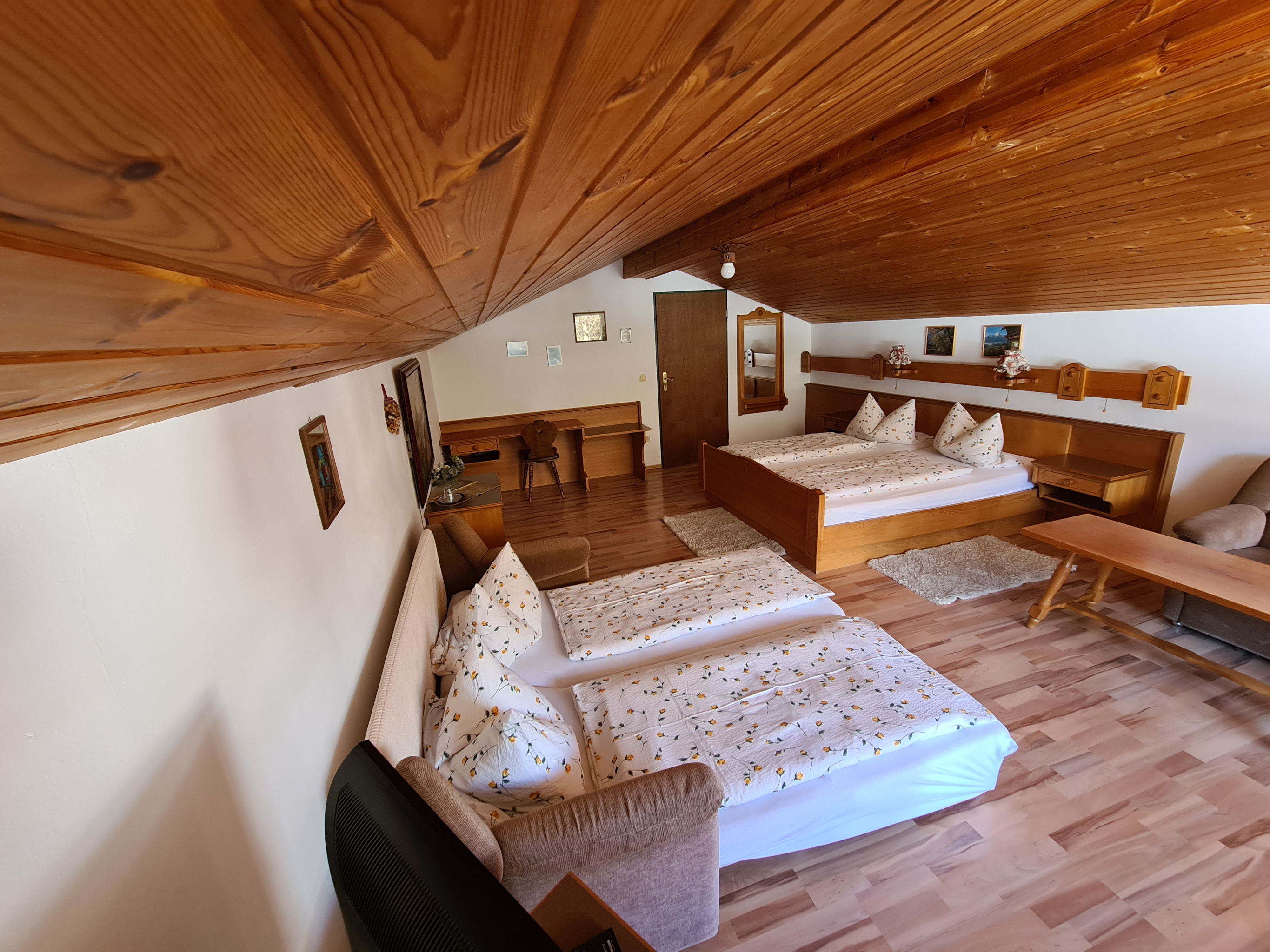 Mehrbettzimmer mit Schreibtisch, Sitzgruppe, Radio, SAT-TV, Wecker, Bad/WC mit Föhn und Toilettenartikel. Das Zimmer verfügt über einen Balkon mit Balkonmöbel.