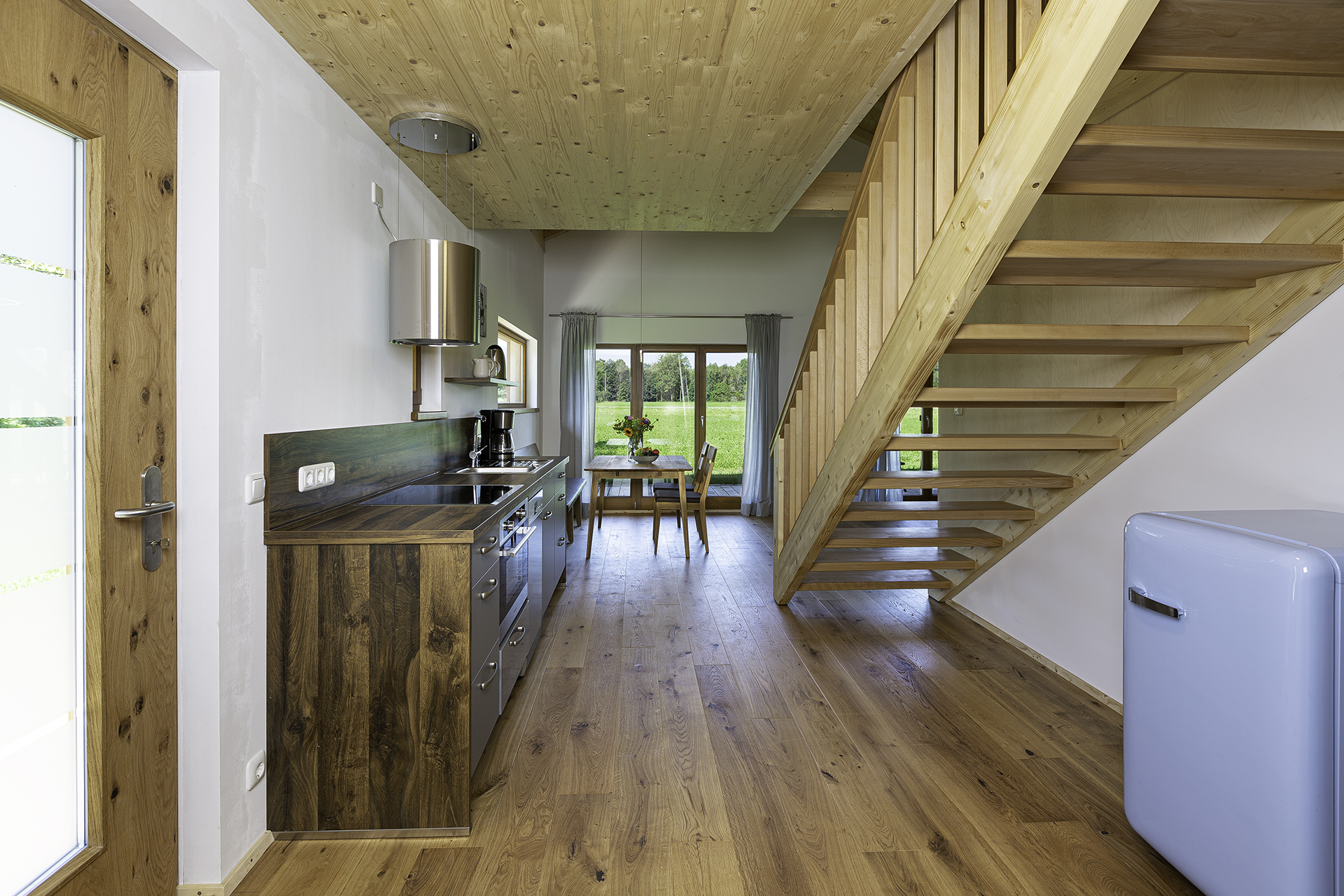 Ferienchalet für 2-4 Personen mit ca. 90 qmNach dem Motto Träumen unter Bäumen stehen unsere gemütlichen Ferienchalets mitten in unserer Streuobstwiese Sie wohnen in einem großzügigen Ferienhaus in Holzbauweise. Große Fensterfronten vermitteln Ihnen das Gefühl mitten im Grünen zu wohnen. Von der Terrasse genießen Sie den Sonnenuntergang und den wunderbaren Blick auf Schloß NeubeuernGerne stellen wir Ihnen auf Anfrage ein Kinderbett zur VerfügungGenießen Sie die Ruhe zwischen unseren Obstbäumen und lassen Sie bei einer Tasse Kaffee auf Ihrer eigenen Terrasse die Seele baumeln. Neben zwei separaten Schlafzimmern und einem hellen Bad ist der Wohnraum hell und offen gestaltet. Im Erdgeschoss finden Sie eine voll ausgestattete Küche, einen Essbereich und einen gemütlichen Wohnbereich, der zum Verweilen einlädt. Über eine Treppe gelangen Sie zum gemütlichen Wohnzimmer mit Kinderspielecke auf die helle Galerie. Unsere Häuserl bieten mit 80 qm Platz für 2 - 4 Personen. Das Thema Nachhaltigkeit liegt unserer Familie schon immer am Herzen! Deshalb haben wir uns auch dazu entschieden, unsere Ferienchalets zusammen mit regionalen Unternehmen in Holzbauweise zu bauen. So trifft die gemütliche Atmosphäre unserer Ferienhäuschen mit viel Holz auf eine moderne Einrichtung mit viel Liebe zum Detail.