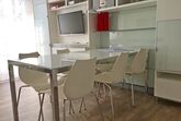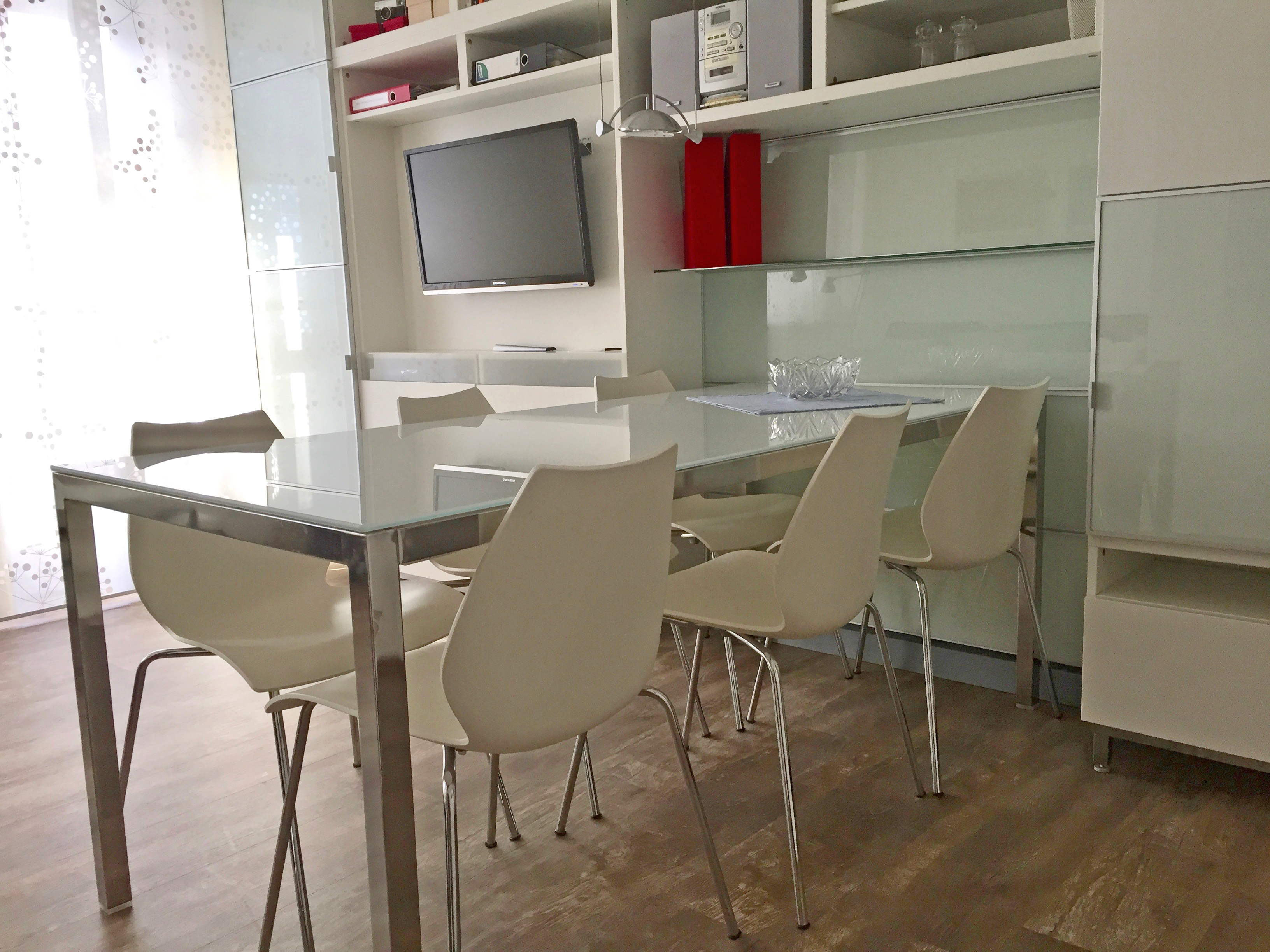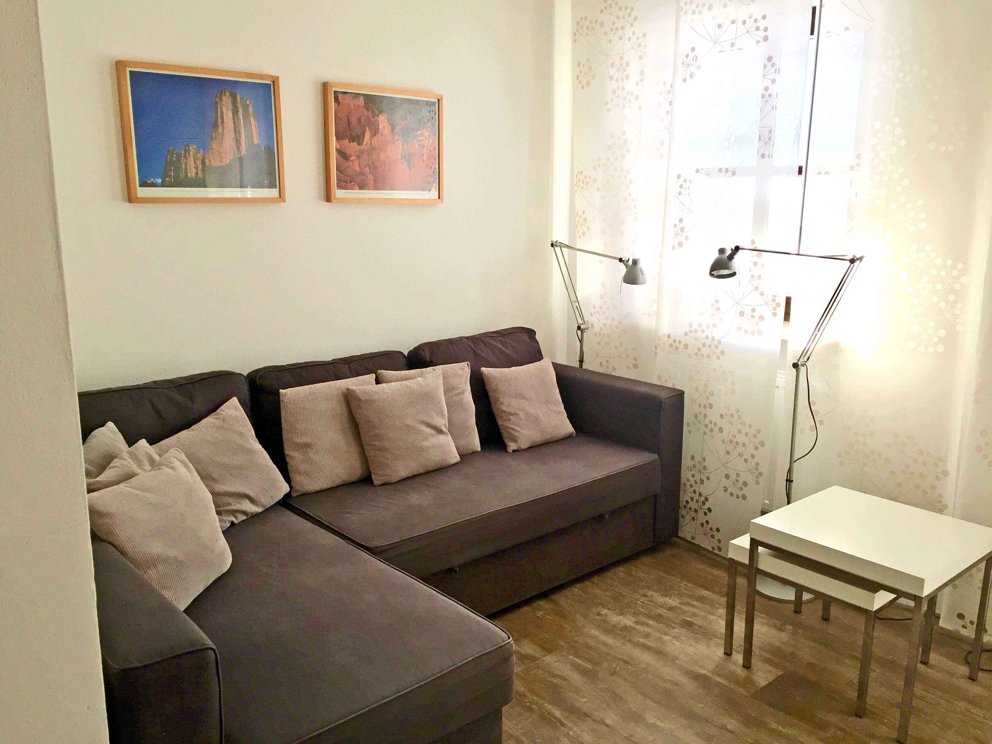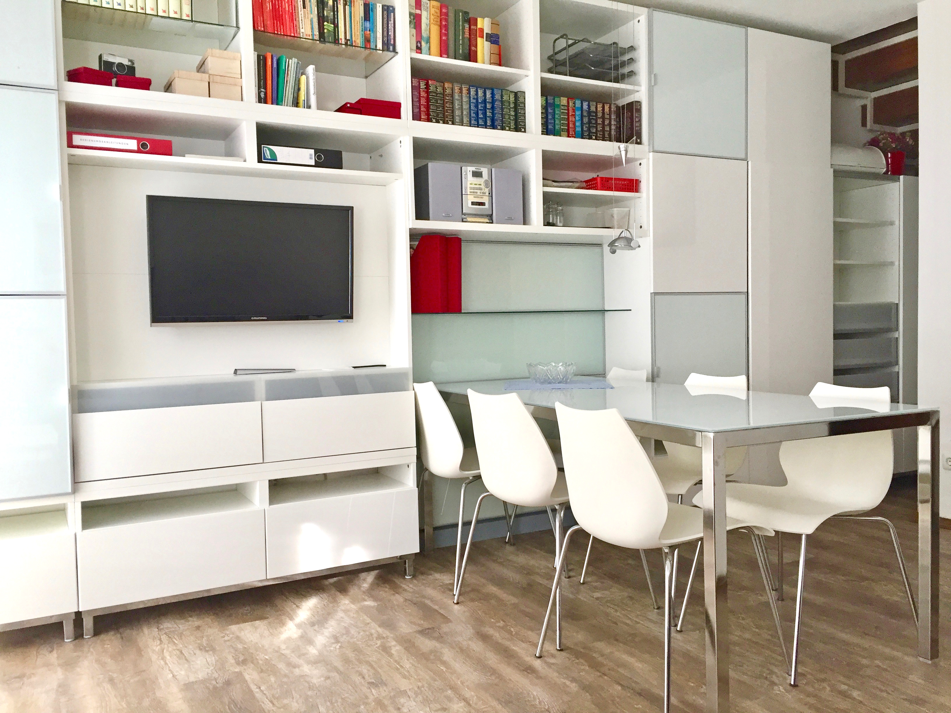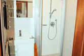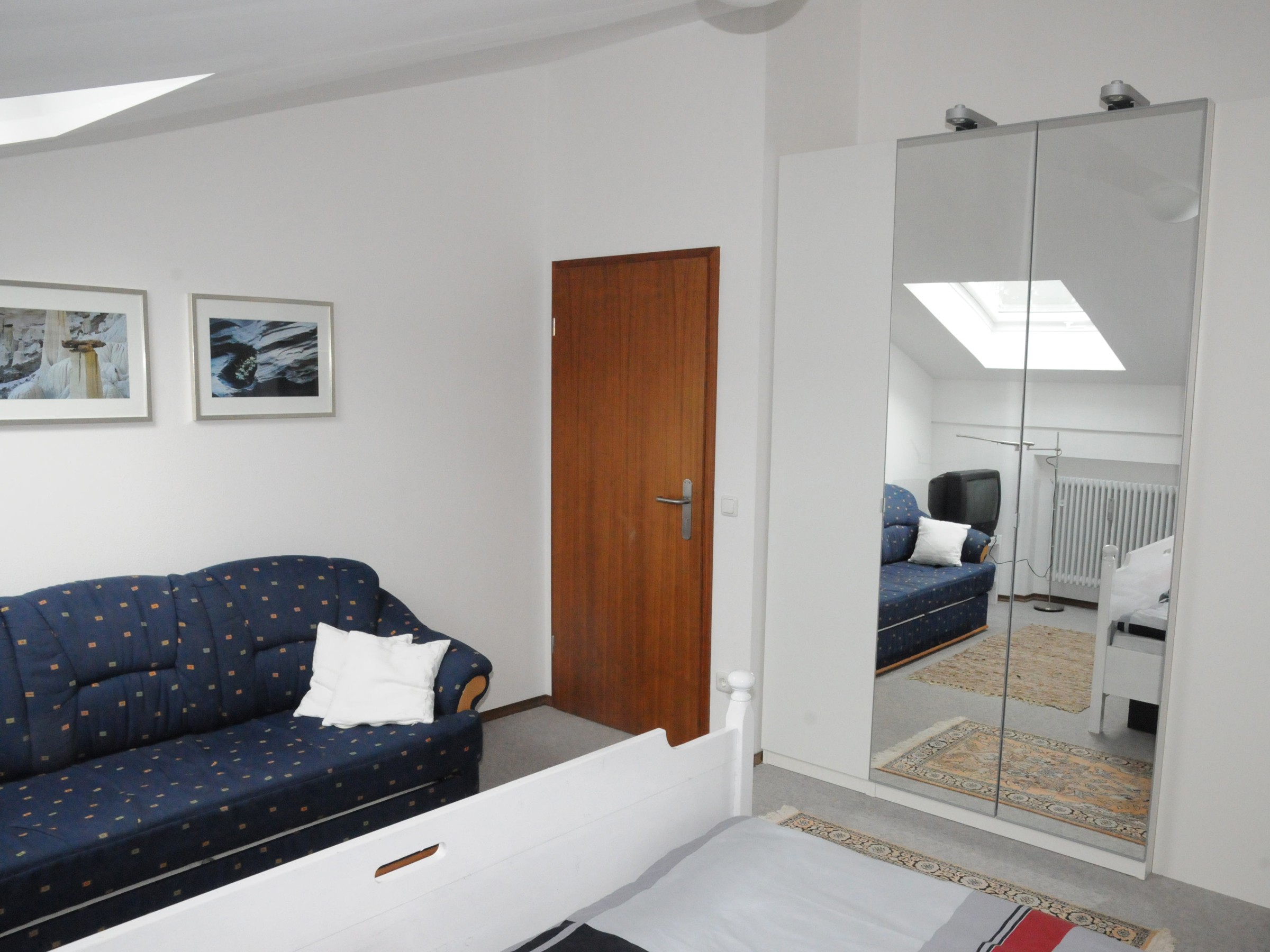 Helle Nichtraucher Maisonette-Ferienwohnung 56 qm im 1. Obergeschoss mit Balkon. Die moderne Einrichtung mit weißen Möbeln verleiht der Wohnung ein elegantes und zugleich gemütliches Flair. Wohnbereich mit ausziehbarer Schlafcouch für eine Person (1,40 m breit), Telefon, kostenloses WLAN, SAT-TV, Essecke, Küchenzeile mit Mikrowelle. Badezimmer mit Dusche/WC. Schlafzimmer in der zweiten Ebene mit Doppelbett, einem Einzelbett und einem Babybett/Kindergitterbett für Kleinkinder bis 2 Jahre, SAT-TV und zusätzlichem Badezimmer mit Dusche/WC. Bettwäsche und Handtücher vorhanden. Haustiere und ein Hund dürfen gegen Aufpreis mitgebracht werden.