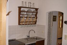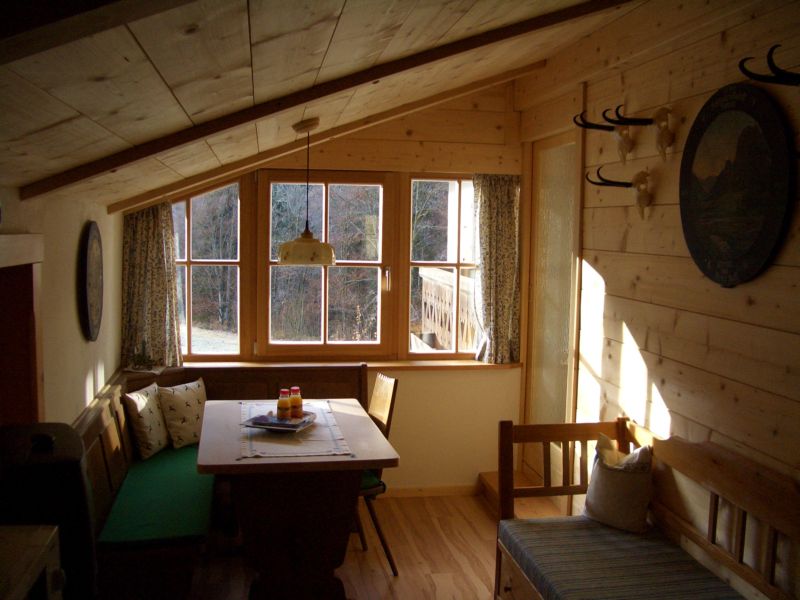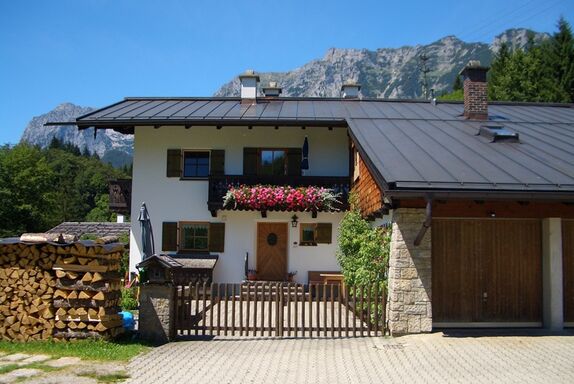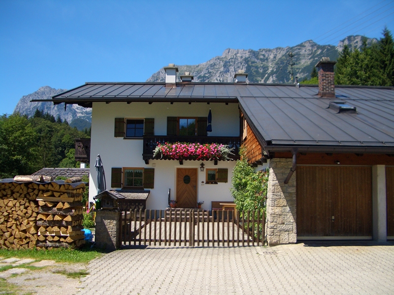 Gemütliche Dachgeschoss-Wohnung mit Kaminofen, zum Süd-Osten gelegen. Die Wohnung hat einen eigenen Eingang und ist über eine Außentreppe zu erreichen. Ein Kinderbett für ein Kleinkind steht zur Verfügung. Die nach Süden gerichteten Fenster lassen Sie auf den Watzmann und das Hochkaltermassiv blicken. Der Balkon auf der Ostseite fängt bei schönem Wetter die ersten Sonnenstrahlen auf. An kalten Tagen spendet ein moderner Kaminofen zusätzlich zur Heizung wohlige Wärme. Bitte haben Sie Verständnis, dass Rauchen in der Wohnung und Haustiere nicht gestattet sind 40 Quadratmeter für 2 Personen (eventuell mit Kleinkind) mit gut ausgestatteter Küche (Ceranfeld mit Backofen, Kühlschrank mit Gefrierfach, Mikrowelle, Spülmaschine, Wasserkocher, Kaffeemaschine, Staubsauger, etc.), Schlafzimmer (großes Bett 2 x 2m) mit Balkon, Bad mit WC und Dusche. Ein TV mit Sat - Anschluss und ein Hochstuhl / Laufstall für ein Kind sind vorhanden. In die Wohnung ist ein großer Trockenspeicher integriert.
