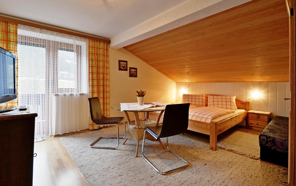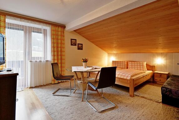 Appartement Naunspitze für 2 - 3 Personen: 1 Schlafraum, 1 Badezimmer, 1 Wohnküche. Bettenarten: 1 Doppelbett, 1 Couchliege. Ausstattung: gratis WLAN, TV / Sat / Radio, Kochnische, Kühlschrank, Wasserkocher, etc. Badezimmer mit Dusche / WC, mit Balkon und Ausblick auf das Kaisergebirge