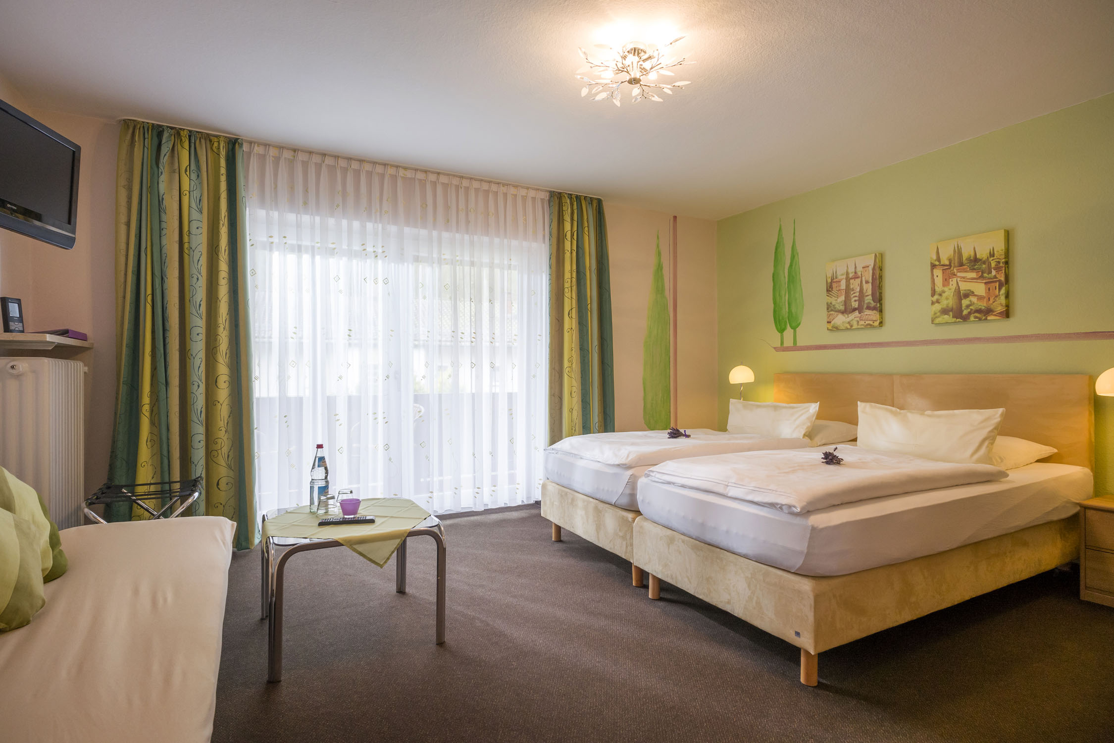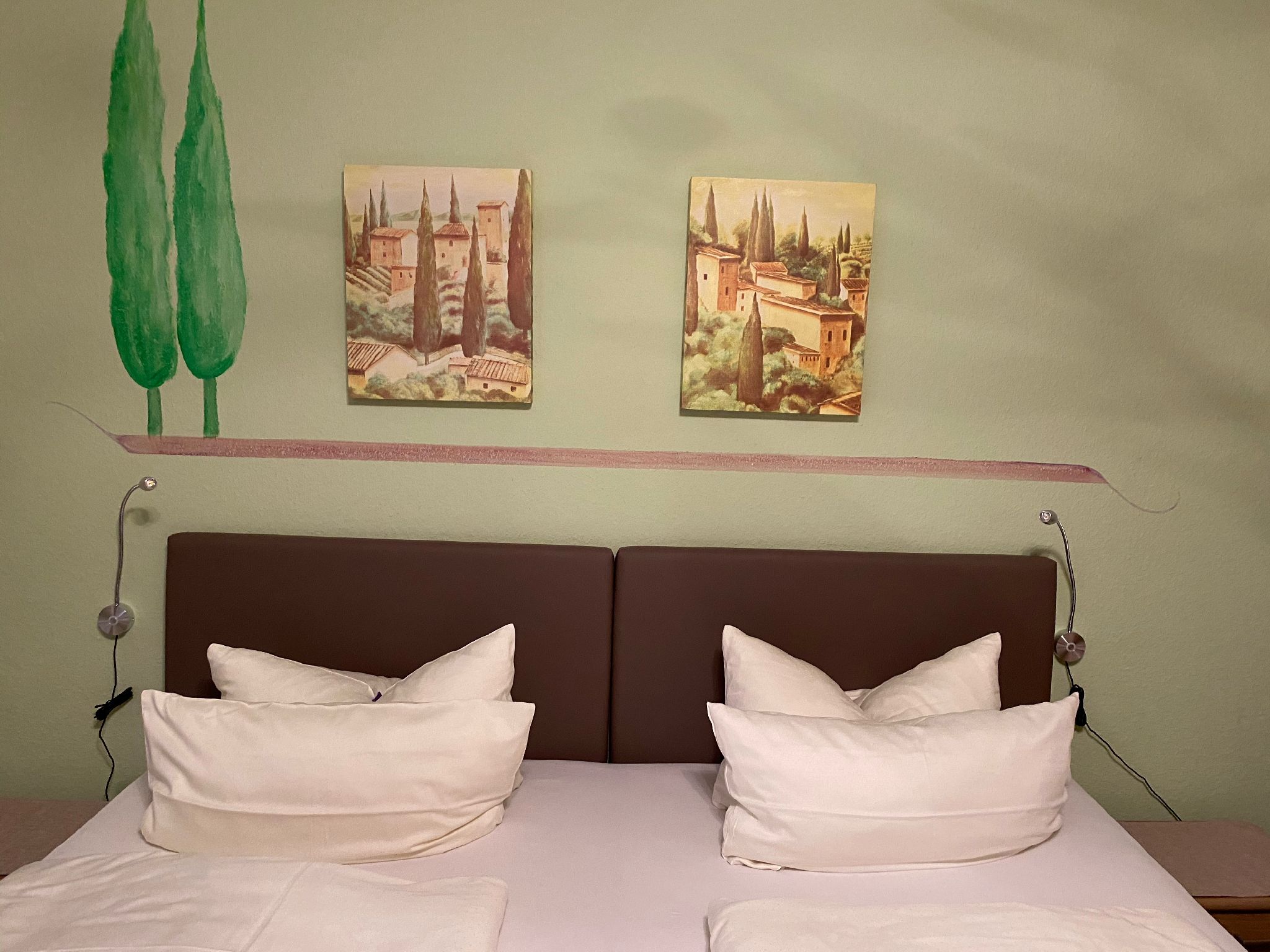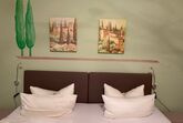 Das Dreibett-Zimmer verfügt über ein gemütliches Boxspringbett und ein Zustellbett von 90/200. Das neu renovierte Bad/WC befindet sich gegenüber vom Zimmer.