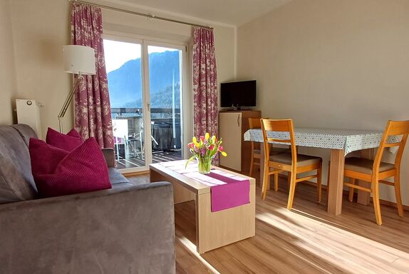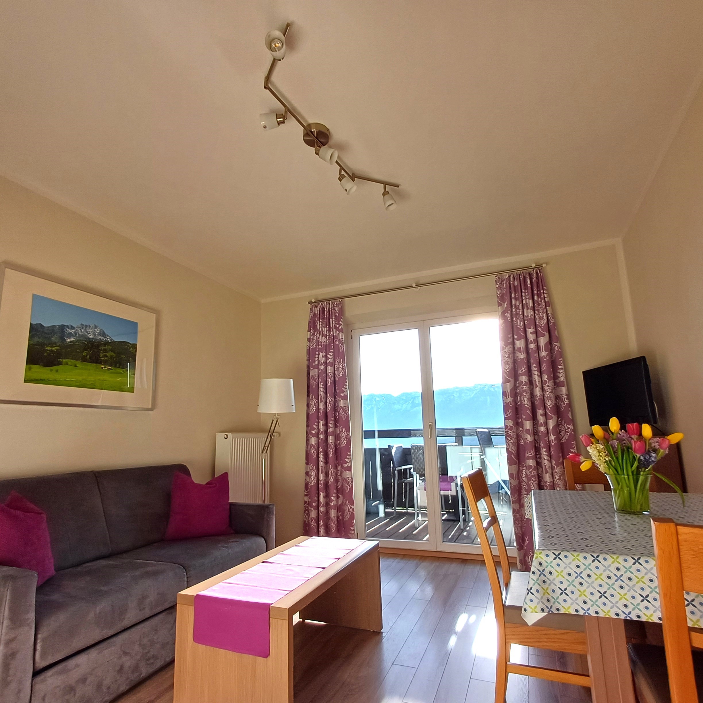 Unsere Ferienwohnung Staufen verfügt über 41 qm, 1 Schlafzimmer, Wohnzimmer mit Küchenzeile, Tageslicht-Bad/WC, Sat-TV, Internetanschluss und vieles mehr. Für den 3. Gast steht auf Anfrage ein bequemes SCHLAFSOFA IM WOHNZIMMER (130x200) bereit, welches gegen einen kleinen Aufpreis hergerichtet werden kann. Auf dem möblierten Balkon können Sie sich vom Alltag erholen und den Panoramablick in die Salzburger und Berchtesgadener Berge genießen. Gerne können Sie den Garten nutzen - Liegestühle und Grillmöglichkeit stehen bereit. Kostenloses WLAN und gratis Parkplätze vorhanden.