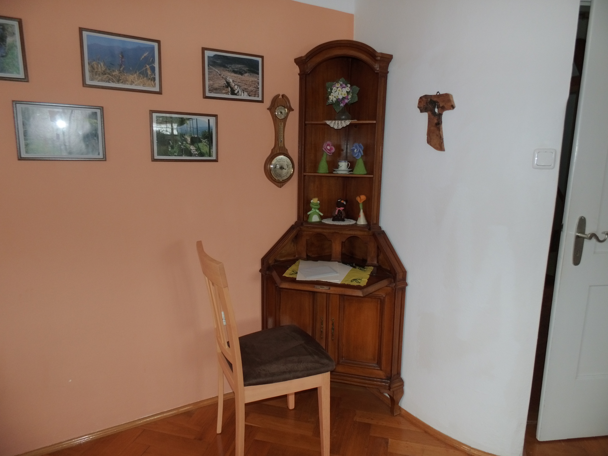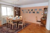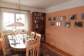 •Wohnzimmer mit großem Esstisch, Ecksofa, SAT-TV, Radio mit CD, kleine Bibliothek und Spielesammlung.