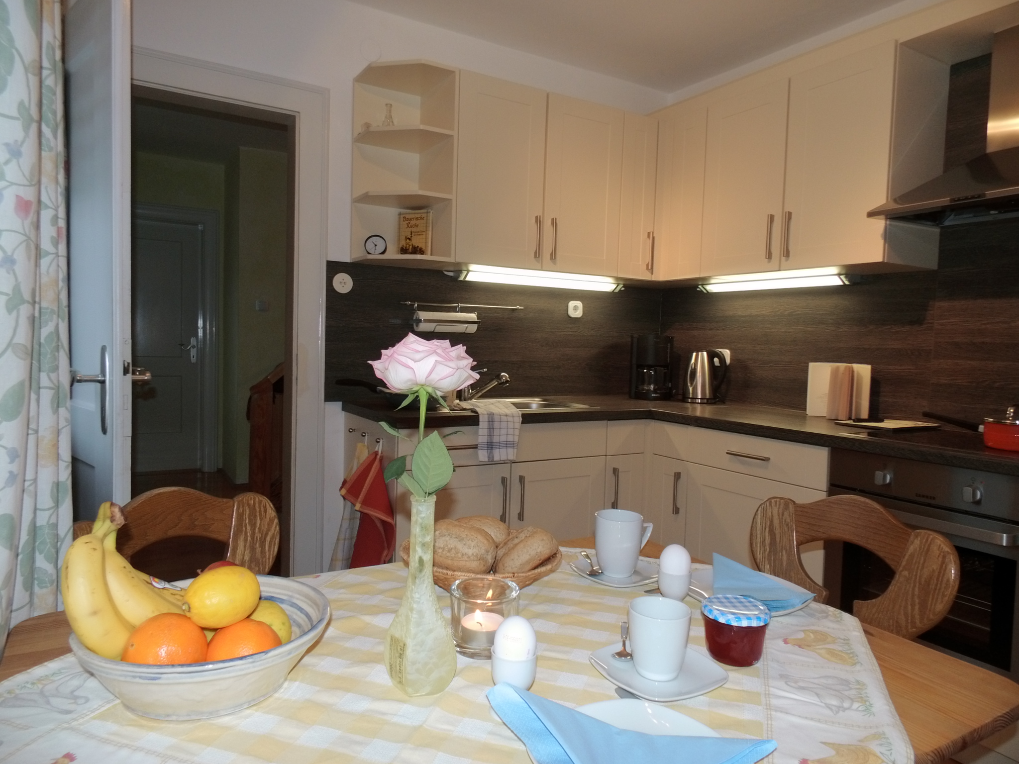 •In der Küche finden Sie eine hochwertige Einbauküche mit 4 Kochplatten, Backrohr, Geschirrspüler, Kühl- und Gefrierschrank, Toaster, Mikrowelle (auf Wunsch), Wasserkocher, Kaffeemaschine und vieles mehr. Geschirr ist ausreichend vorhanden. Tisch und Sitzgelegenheit bieten die Möglichkeit, beim Frühstück die Kühe zu beobachten.