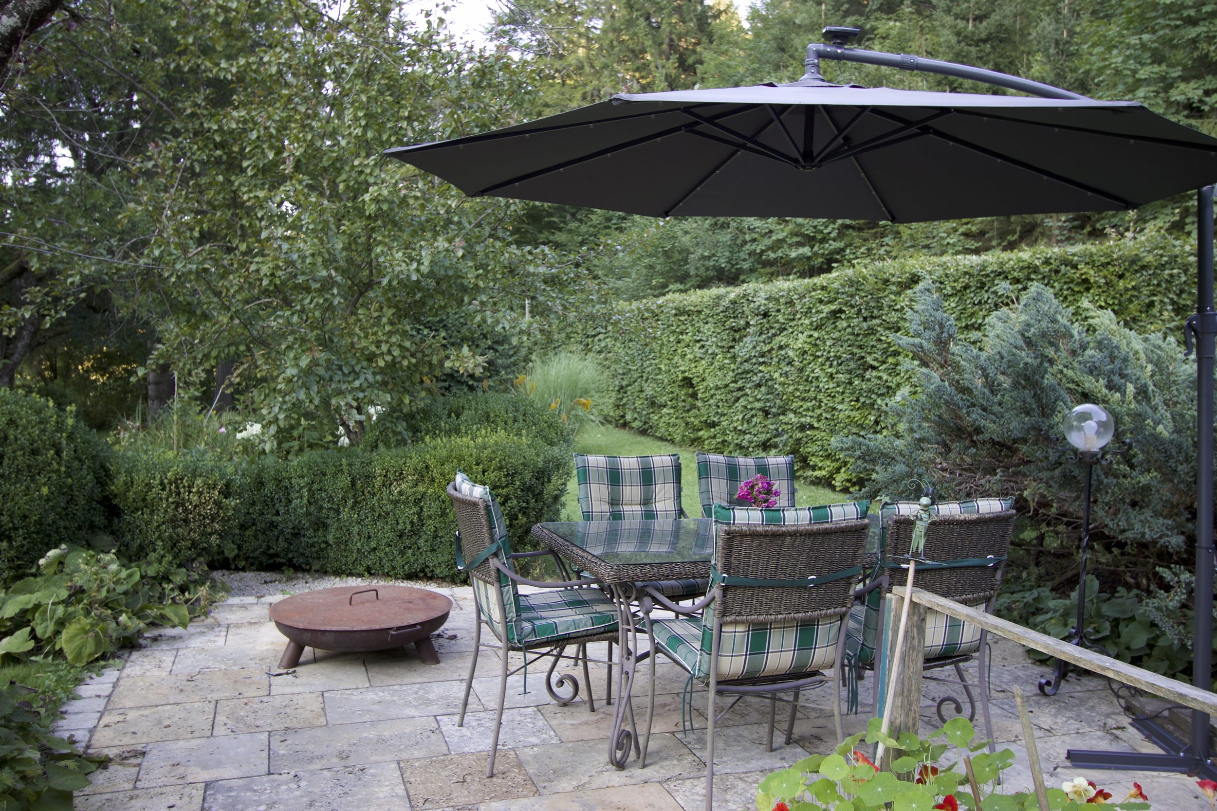 Lassen Sie in unserer großen Gartenanlage beim Grillen und Lagerfeuer den Tag ausklingen.