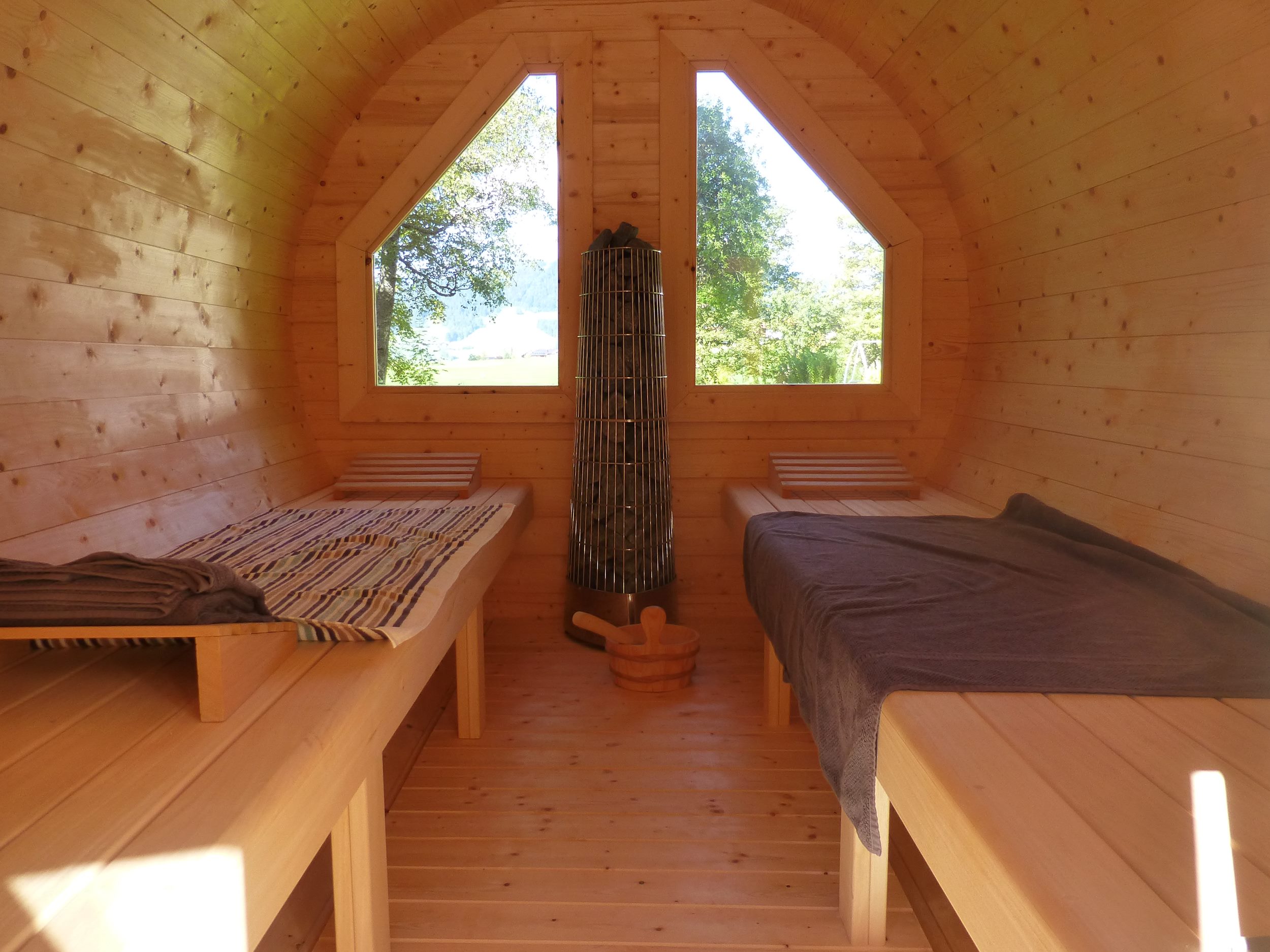 Genießen Sie Ihren Urlaub mit unserer luxuriösen 5***** Ausstattung in modernen Ambiente. Unsere finnisch-römische Sauna im Garten sorgt für Entspannung nach einem ereignisreichen Tag.