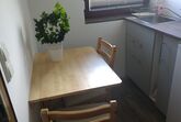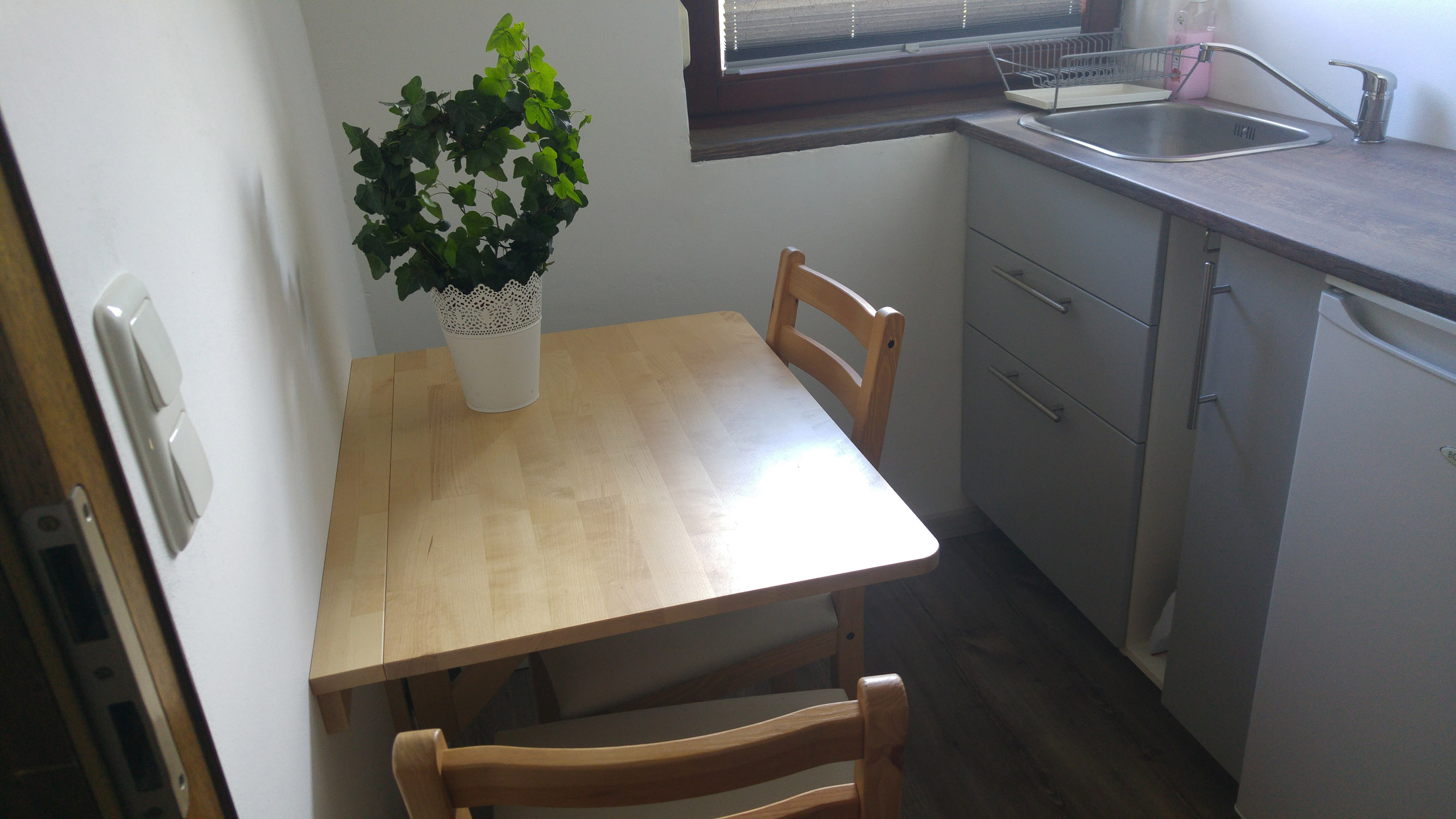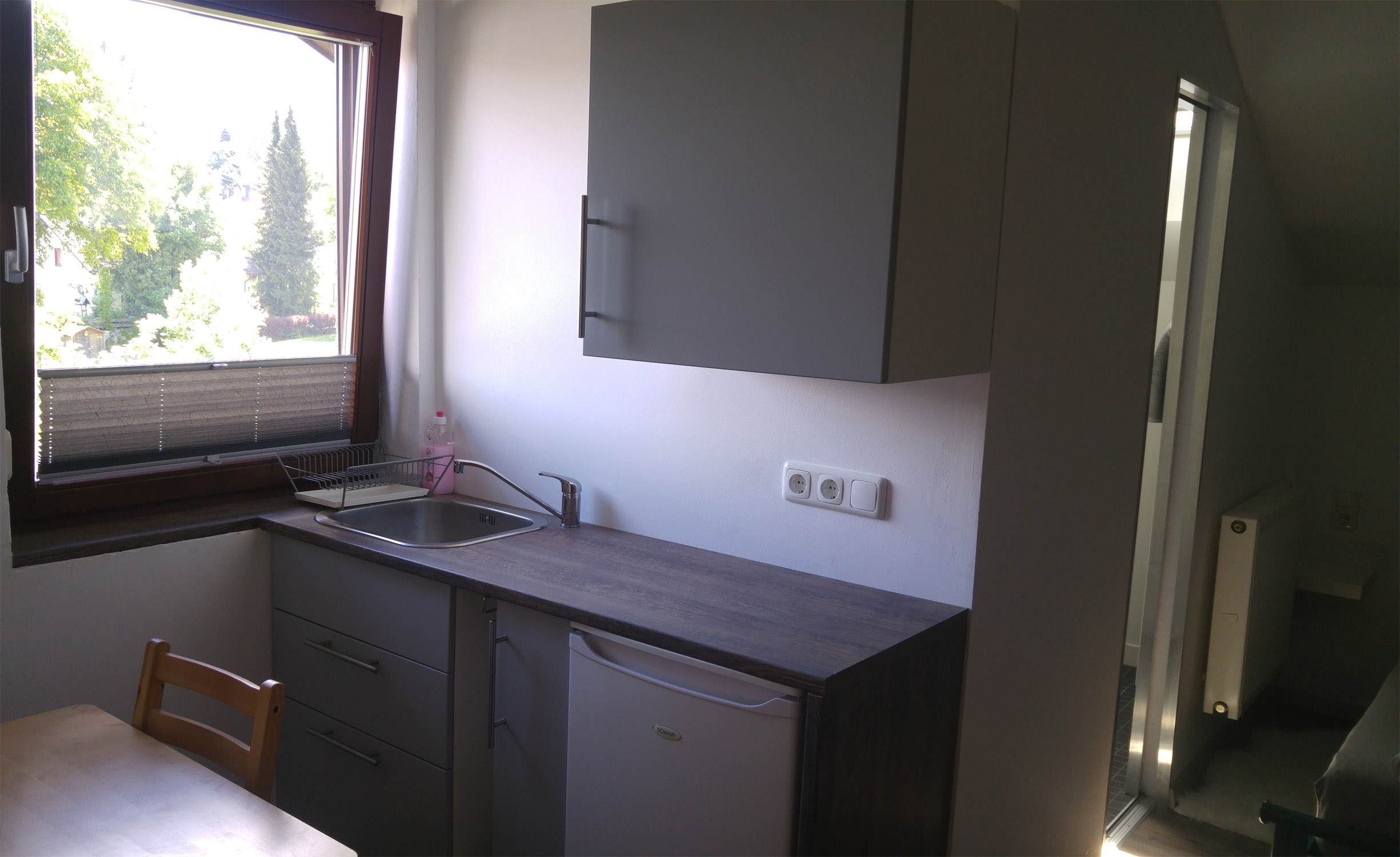Unser neu renoviertes Appartement ist ideal für zwei Personen und bietet Ihnen mit 17 Quadratmetern genug Platz für Ihren Aufenthalt. Das gemütliche Mansardenzimmer bietet eine kleine Sitzgelegenheit für ein Frühstück oder Brotzeiten und einen Schlafbereich mit Ehebett. Falls Sie gerne Frühstückseier essen, erhalten Sie auf Nachfrage unsere frischen Freiland-Eier für 30ct / Stück, die Sie mit dem vorhandenen Eierkocher praktisch kochen können. Aber keine Sorge, Sie werden nicht von einem krähenden Hahn geweckt. Das Appartement ist mit einem Wasserkocher, Kühlschrank und Kaffeemaschine ausgestattet. Auch Geschirr ist ausreichend verfügbar. Wenn das Wetter mitspielt, kann der Sonnenaufgang auf dem Balkon mit hervorragendem Blick auf das Kaisergebirge genossen werden. Auch ein gemütlicher Abend kann dort verbracht werden, doch auch unser Garten mit Grillmöglichkeiten steht Ihnen selbstverständlich zur Verfügung. Das Badezimmer, welches mit einer Schiebetür von dem Schlafbereich getrennt ist, ist durch das Dachfenster hell durchflutet. Es ist ausgestattet mit Föhn, WC, Dusche, Waschbecken und Handtuchwärmer.