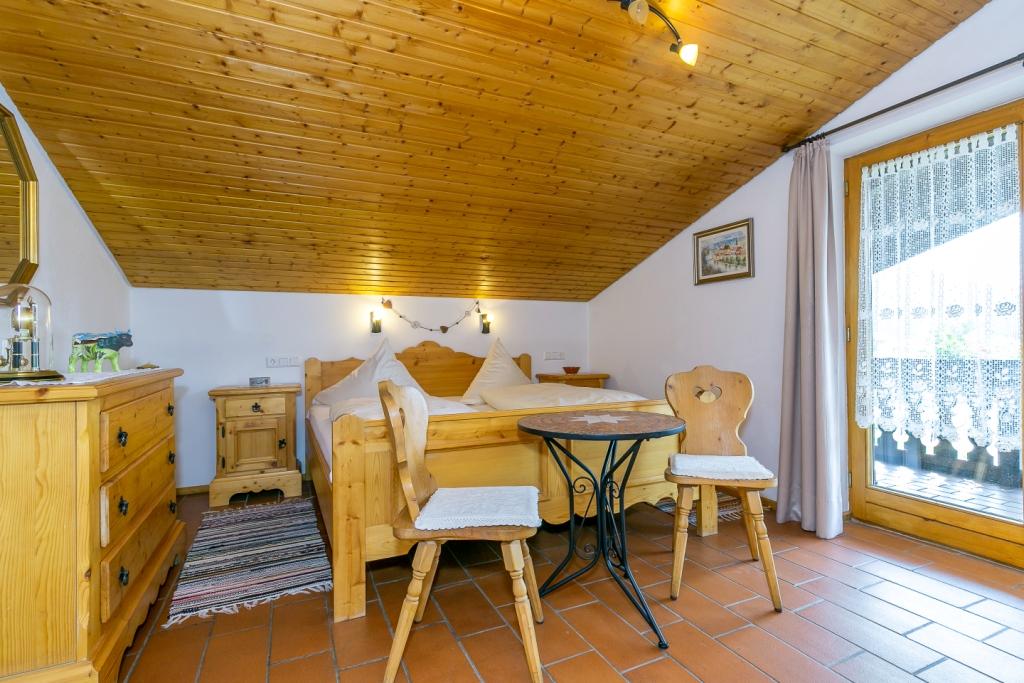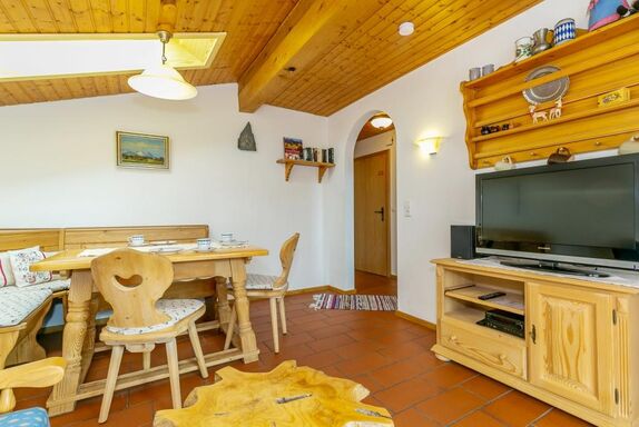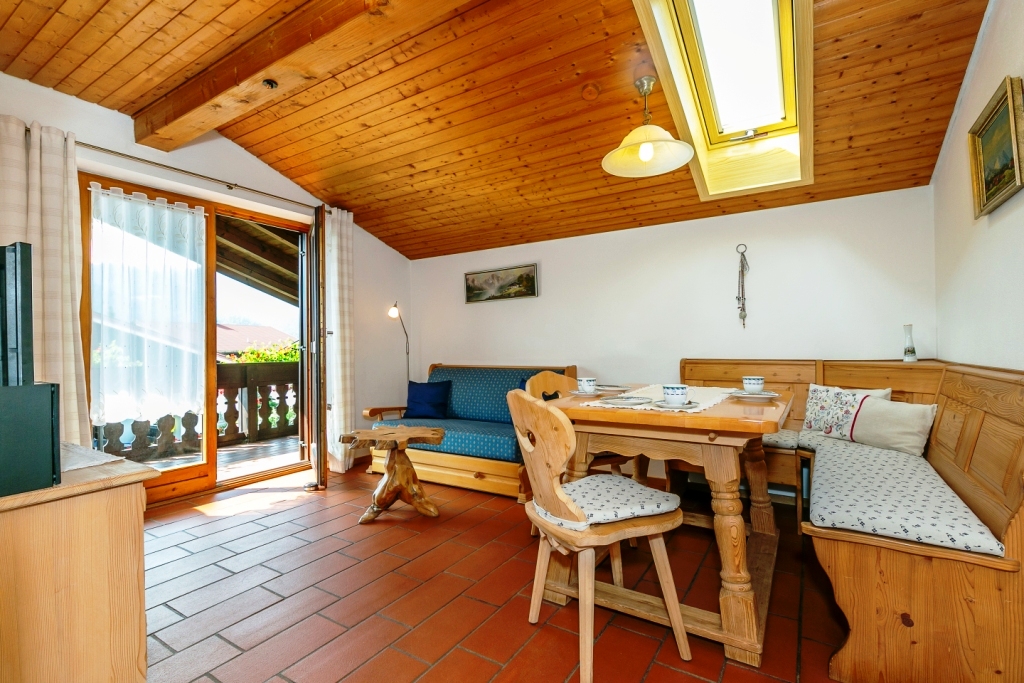 Die 2-Zimmer-Ferienwohnung bietet komfortabel Platz für 2 Personen. Die Wohnung besteht aus Diele mit Garderobe, Wohn-/Esszimmer mit Eckbankgruppe und ausziehbarem Sofa, Schlafzimmer mit Doppelbett, moderner Küche und komfortablem Bad mit Dusche/WC. Helle Massivholz-Möbel im Landhausstil und die Holzdecken geben der Wohnung ein gemütliches Ambiente. Der Terrakotta-Boden mit Fußbodenheizung in den Wohnräumen strahlt nicht nur in der kalten Jahreszeit behagliche Wärme aus. Der große Balkon lädt zum Frühstücken oder zur Brotzeit in der warmen Morgensonne ein, und nach einem heißen Sommertag entspannen Sie in der Lounge-Ecke bei einem Glas Wein oder Aperitiv. Die gesamte Wohnung haben wir so gestaltet, dass wir auch selbst gerne hier Urlaub machen würden. Unter anderem haben wir 2012 die Küche neu eingerichtet und 2014 das Bad komplett renoviert.