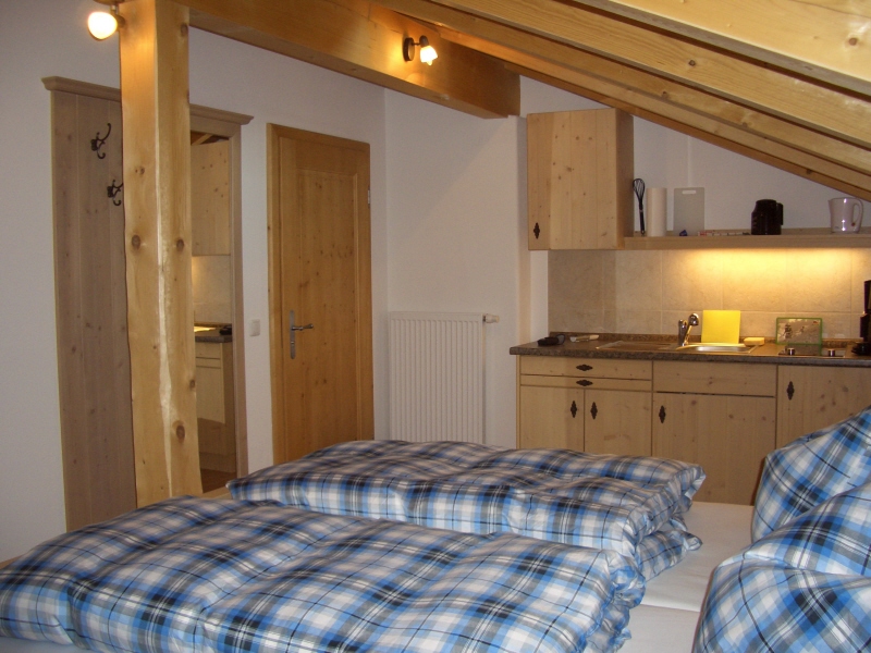 Das Ferienzimmer 'Ramsau' (20 qm) ist ausgestattet mit einer kleinen Küchenzeile mit 2 Kochplatten, wo man sich gut selber versorgen kann und mit einem Badezimmer, das genügend Platz bietet. Zwei Personen finden hier ein komfortables zu Hause. Es kann separat gebucht werden oder zur Ferienwohnung 'Königssee' dazu genommen werden, weil es direkt im Anschluss an die Wohnung ist. Die Betten sind alle bezogen. Unser Bäcker liefert, bei Bedarf, täglich frische Semmeln, die Sie am Vortag bestellen können. Eine wunderschöne Terrasse mit Grillmöglichkeit, die nicht weit entfernt ist und ein alter Getreidekasten aus dem 17. Jahrhundert (kann als urige Sitzmöglichkeit genutzt werden) laden zu einem unvergesslichen Aufenthalt ein!