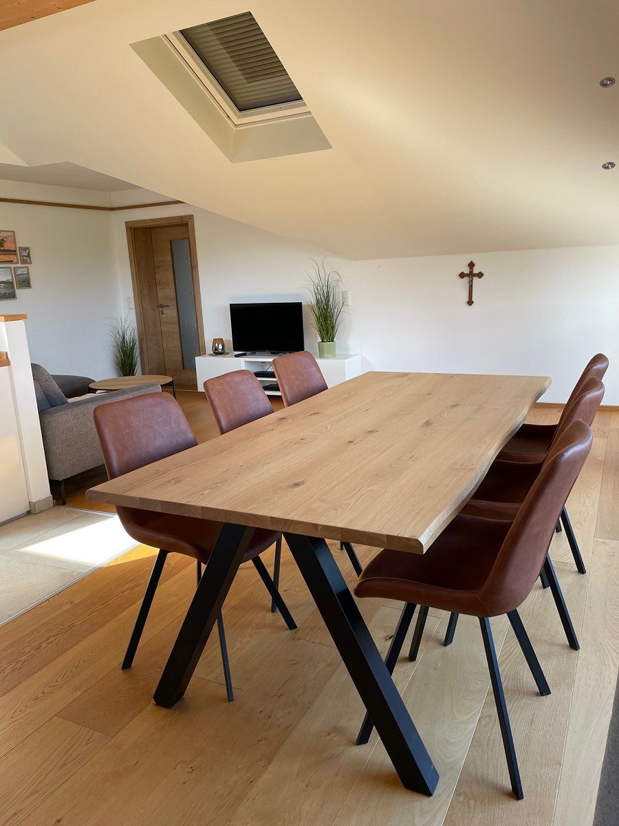Herzlich willkommen in unserer geräumigen und gut ausgestatteten Ferienwohnung! Die Wohnung befindet sich im 1. Stock, hat eine Größe von rund 100 m² und bietet Platz für bis zu 6 Personen. 3 Schlafzimmer, 2 Duschen mit WC, ein großer Wohnbereich mit Küche und einen Balkon bietet Ihnen unsere Ferienwohnung. Im Garten wartet ein eigener Grillplatz auf Sie. Waschmaschine, Trockner und ein überdachter Parkplatz inklusive.
