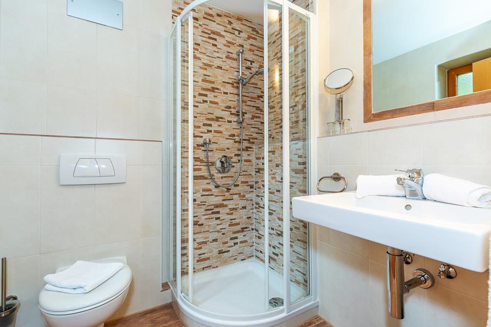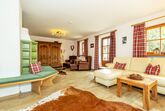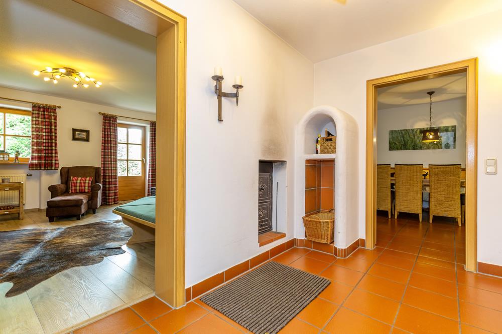 Alle Schlafzimmer verfügen jeweils über ein Doppelbett, sowie Sat-TV-Flachbildschirme. Der geräumige Wohnbereich ist mit viel Liebe zum Detail hochwertig eingerichtet. Entspannen Sie nach einer schönen Wanderung auf der komfortablen Couchgarnitur oder einem der beiden Fernsehsessel. Der eingebaute Kachelofen sorgt gerade im Winter für eine gediegen Stimmung. Der Essbereich punktet mit einem großen Holztisch und hochwertigen Stühlen, sowie mit einer geräumigen Küchenzeile, mit Kühl- und Gefrierschrank, Mikrowelle, Backofen, 4-Platten-Ceranfeld, Geschirrspüler. Hunde sind hier herzlich willkommen. Im Chalet Bergromantik gibt es zwei Bäder, in beiden befindet sich ein WC. Auch eine Waschmaschine mit Wäschetrockner dürfen unsere Gäste gerne benutzen. Des Weiteren bleibt Ihre Winterausrüstung stets trocken – dank Skischuhalter mit Skischuhheizung. Auch Ihr Auto bleibt in der Garage trocken. Auf dem Stellplatz vor der Garage können ein bis zwei PKWs parken.