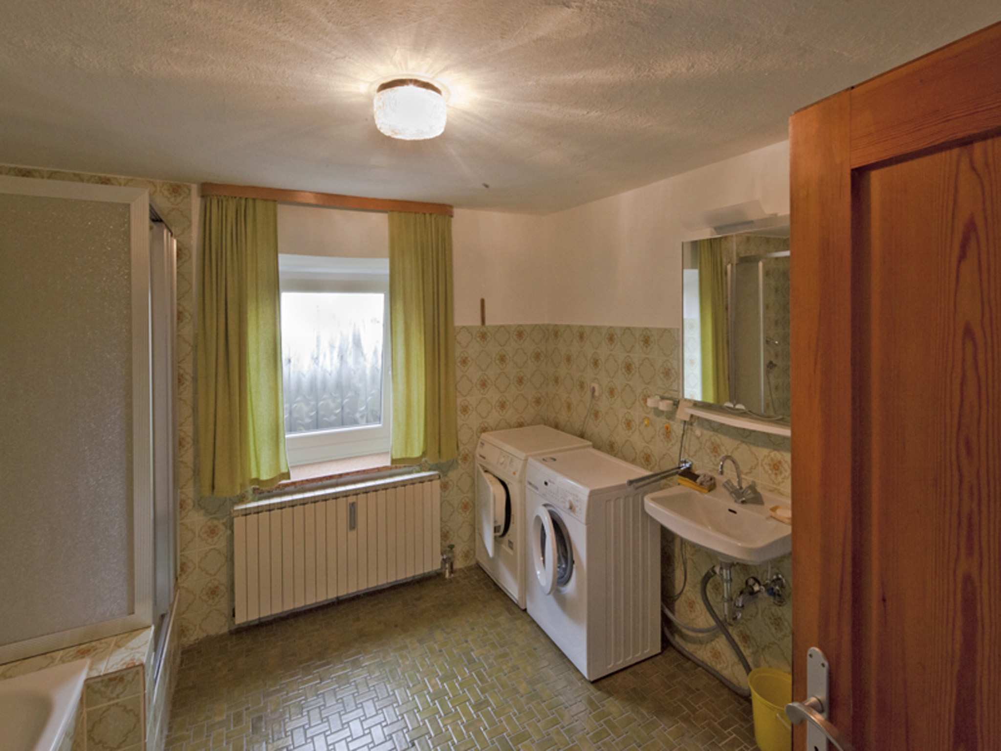 Voll möblierte, 72 m² große Altbauwohnung für 1 bis 2 Personen im Erdgeschoss. Die Wohnung verfügt über eine voll ausgestattete Küche, ein Wohnzimmer mit großer Wohnlandschaft und TV, ein Schlafzimmer, ein Badezimmer mit Waschmaschine und Wäschetrockner und ein separates WC. Eine Gartenlaube und eine große Liegewiese ergänzen das Angebot.