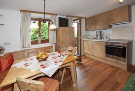 Neu renovierte, gemütliche Nichtraucher-Ferienwohnung im Landhausstil. Die Wohnung ist mit einer Wohnküche (u.a. Backofen mit 4-Platten-Ceranfeld, Filterkaffeemaschine, Wasserkocher, etc. ) Essecke und einer Schlafcouch für 1 Kinder bis 15 Jahre sowie einem separaten Schlafzimmer mit Dusche/WC, ausgestattet. Vom Ostbalkon haben Sie einen wunderbaren Bergblick Richtung Steinberg und Reiteralm.