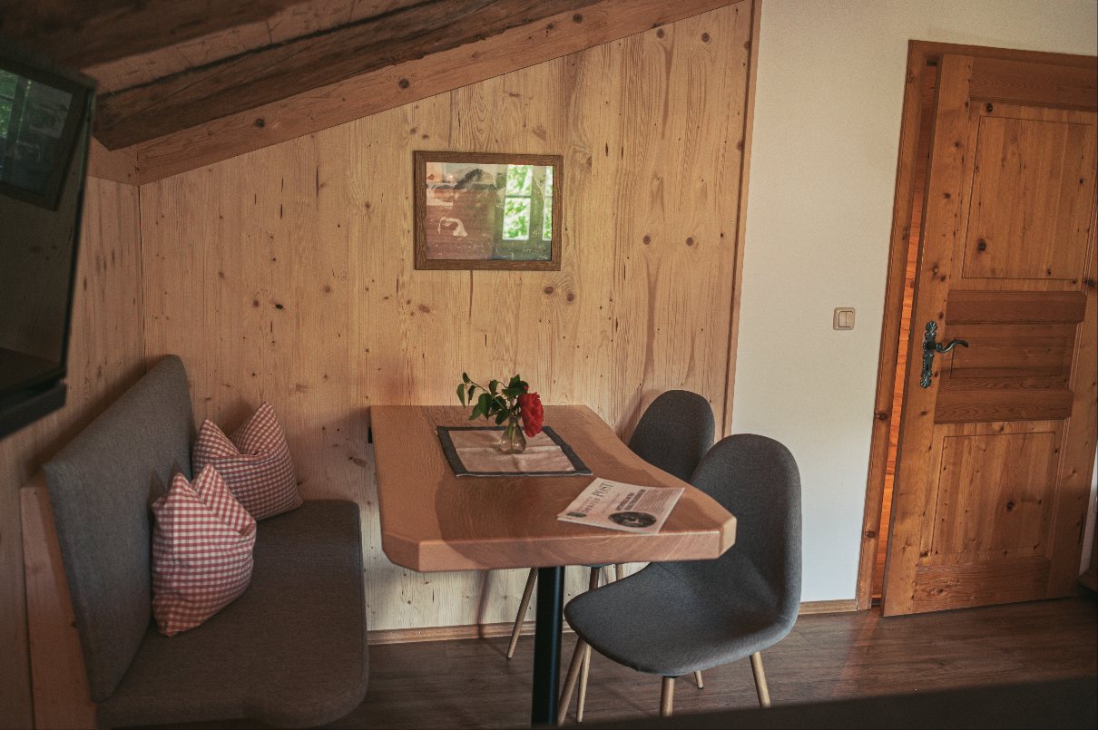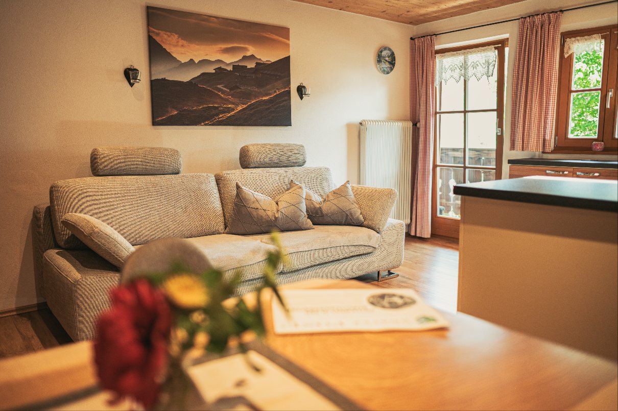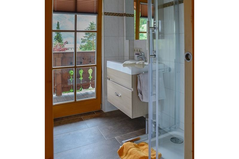 Neu renovierte, großzügige Nichtraucher-Ferienwohnung im Landhausstil. Die Wohnung ist mit einer gemütlichen Wohnküche (u.a. mit Geschirrspüler und Backofen mit 4-Platten-Ceranfeld ) und Essecke sowie ein separates Schlafzimmer (Doppelbett) und separates Schlafzimmer (Französisches Bett), mit Dusche/WC, ausgestattet. Vom Ostbalkon haben Sie einen wunderbaren Bergblick Richtung Steinberg und Reiteralm.