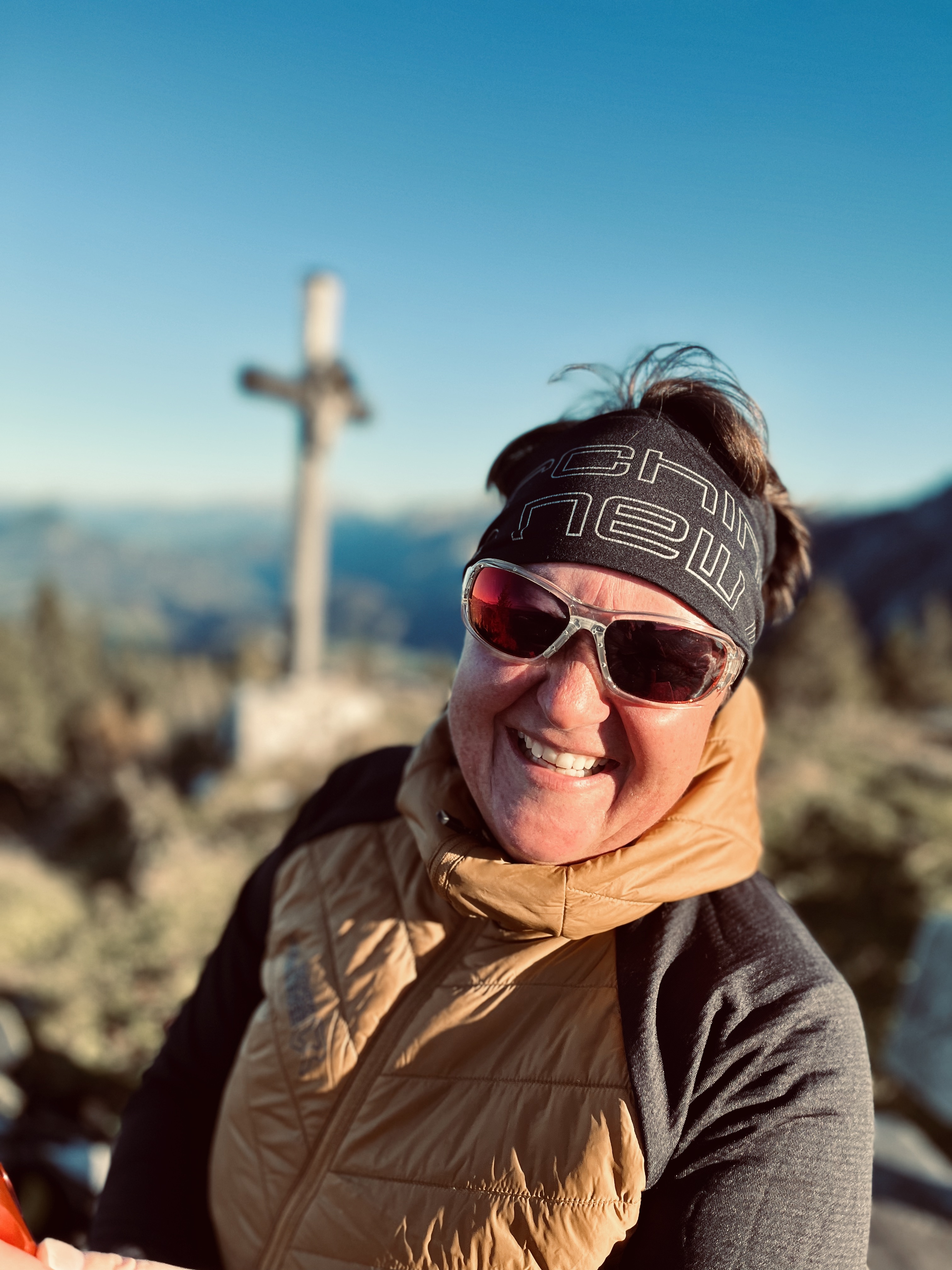 Privater Eingang, kleiner, südseitiger Balkon mit Sitzgelegenheit, Sonnenschirm und kleiner Balkonklapptisch für Ihre Brotzeit oder für den ersten Kaffee am Morgen. Endloser Panoramablick!