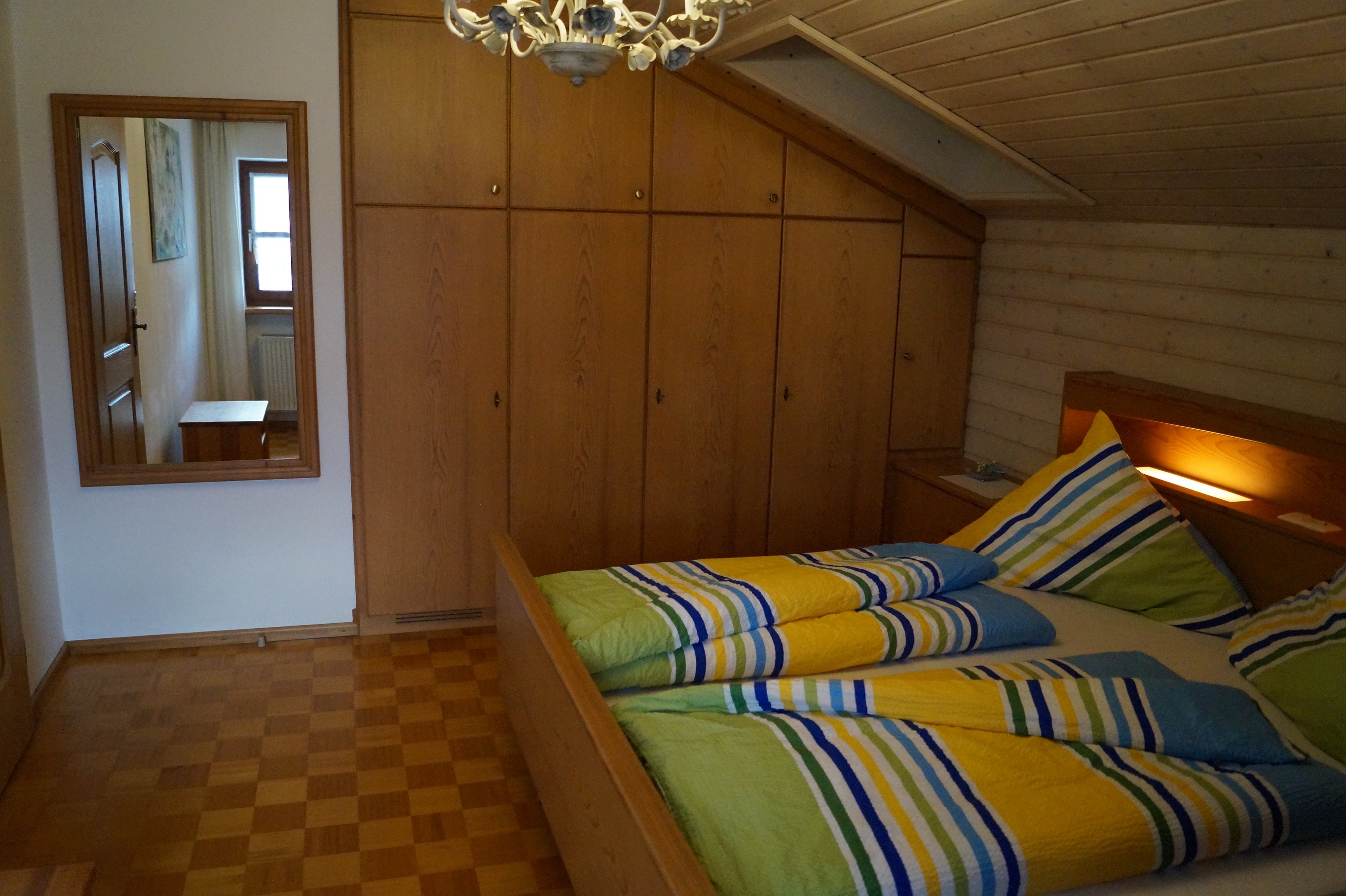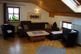 Sehr geräumige (96qm) und gepflegte Ferienwohnung ist im bayerischen Landhausstil eingerichtet. Die im Dachgeschoss gelegene Ferienwohnung verfügt über 3 Schlafzimmer, 1 Wohnzimmer, 1 separate Küche mit Essplatz, 1 Badezimmer mit Dusche und Badewanne sowie ein separates WC und ein 2. WC. Ein Balkon mit Bergblick ist auch vorhanden.