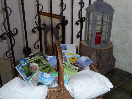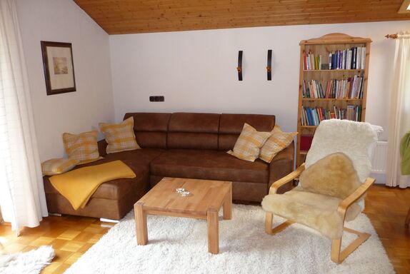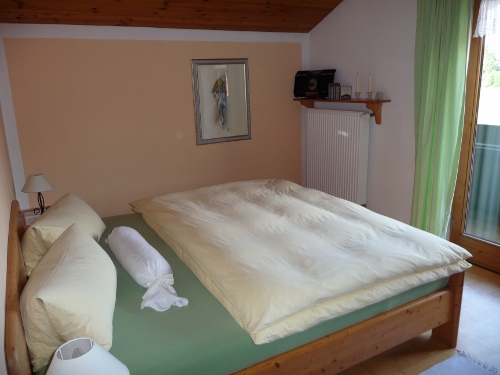 Unsere gemütliche Ferienwohnung (90 qm) befindet sich in ruhiger Ortsrandlage mit Bergblick im 1. OG mit Zugang zum Garten.