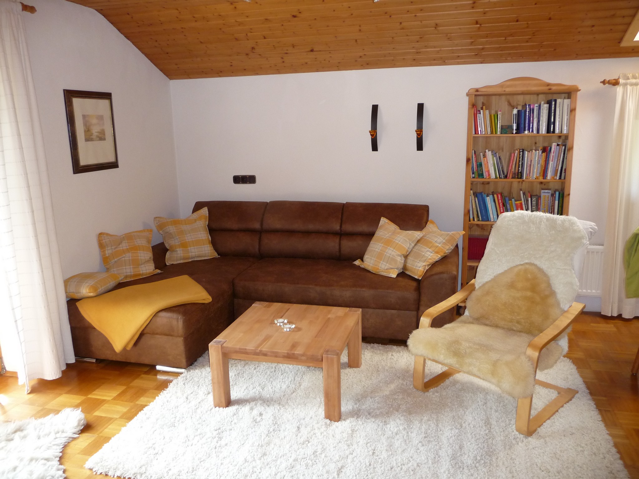 1 großer Wohnraum mit Kachelofen, Wohnküche mit Essecke, Geschirrspülmaschine und Backofen, 1 Schlafraum mit Doppelbett (180x200cm), 1 Schlafraum mit 2 Einzelbetten, Bad mit Wanne, Dusche und WC, 2 Balkone, SAT-TV mit Flachbildfernseher, DVD-Player, CD-Radio, WLAN kostenlos, Parkplatz vor dem Haus, Nichtraucherwohnung, Parkettböden, keine Haustiere.