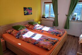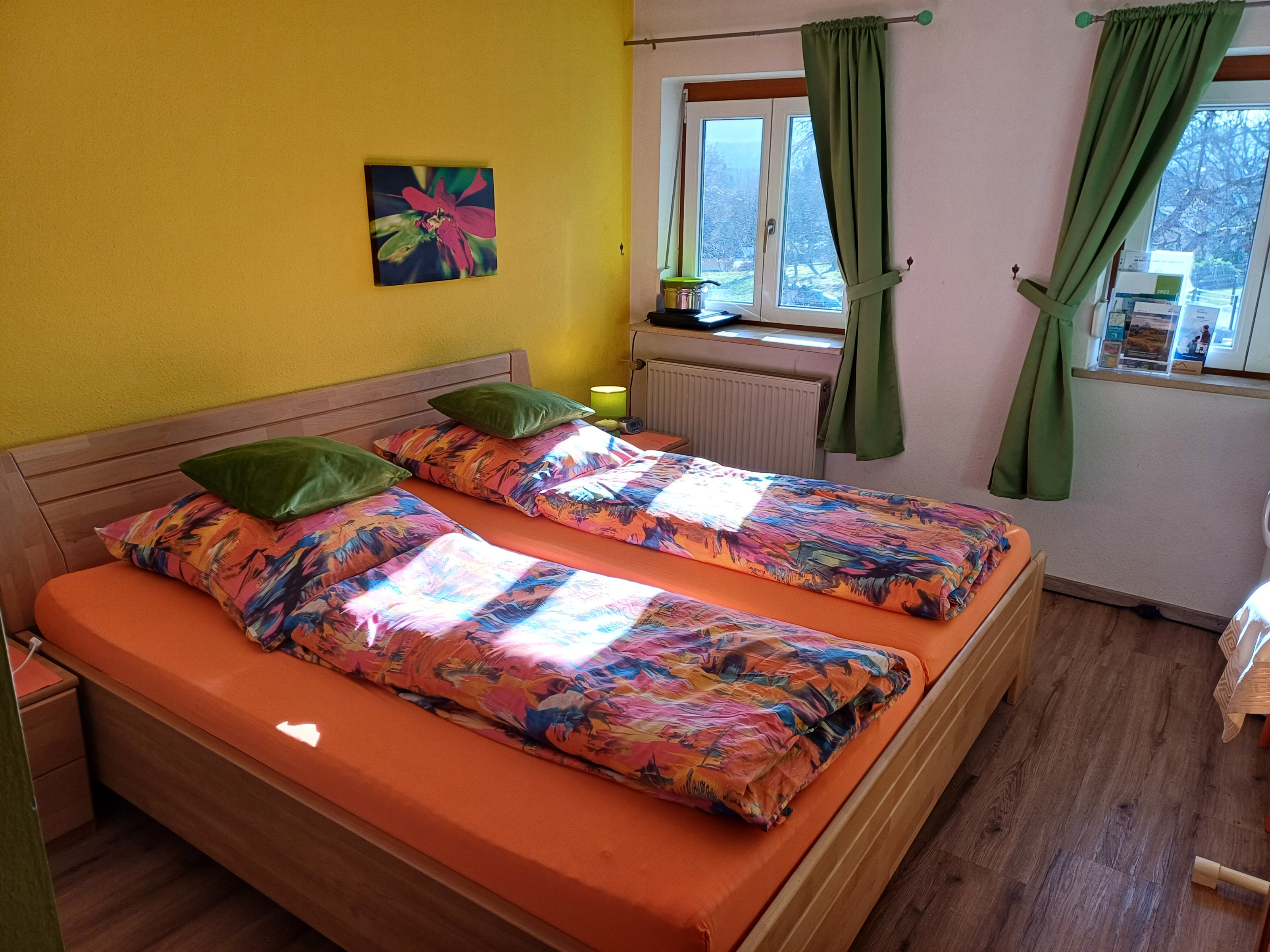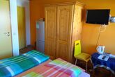 Letzte Teilrenovierung 2024, Flasche Wasser gratis. Gemütlich eingerichtete Zimmer mit Doppelbett im Landhausstil mit separater Sitzmöglichkeit + Tisch, inkl. Dusche/WC, Kühlschrank als Minibar, Mikrowelle, Kochplatte, Wasserkocher, Flachbild-TV (32) im Zimmer (Kabel) und kostenlosem Internet (WLAN). Auch gut geeignet für Monteure und Arbeiter. Nur 1 Kleintier € 10,-