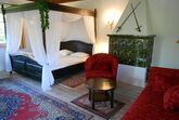 Das geräumig wirkende 1-Zi-Apartment (40 qm) beeindruckt mit hellem Eichenparkett, hoher Holzdecke und edlen Teppichen. Das bequeme Doppel-Himmelbett, die gemütliche Sofaecke und die Essgruppe am Fenster sowie liebevoll restaurierte antike Nussbaum-Möbel verstärken das einzigartige Ambiente – ideal für Hochzeitspaare und Romantiker! Das Bad und die separate Einbauküche sind modern und dennoch passend gehalten, ebenso wie die Ausstattung mit Fernseher, Mikrowelle, CD-Player, WLAN uvm.. Es gibt einen eigenen Parkplatz, einen Fahrradkeller und einen begehbaren Schrank.