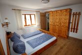 Das Schlafzimmer ist ausgestattet mit einem Doppelbett und Kleiderschrank, anschließend befindet sich das Bad mit Dusche und WC.