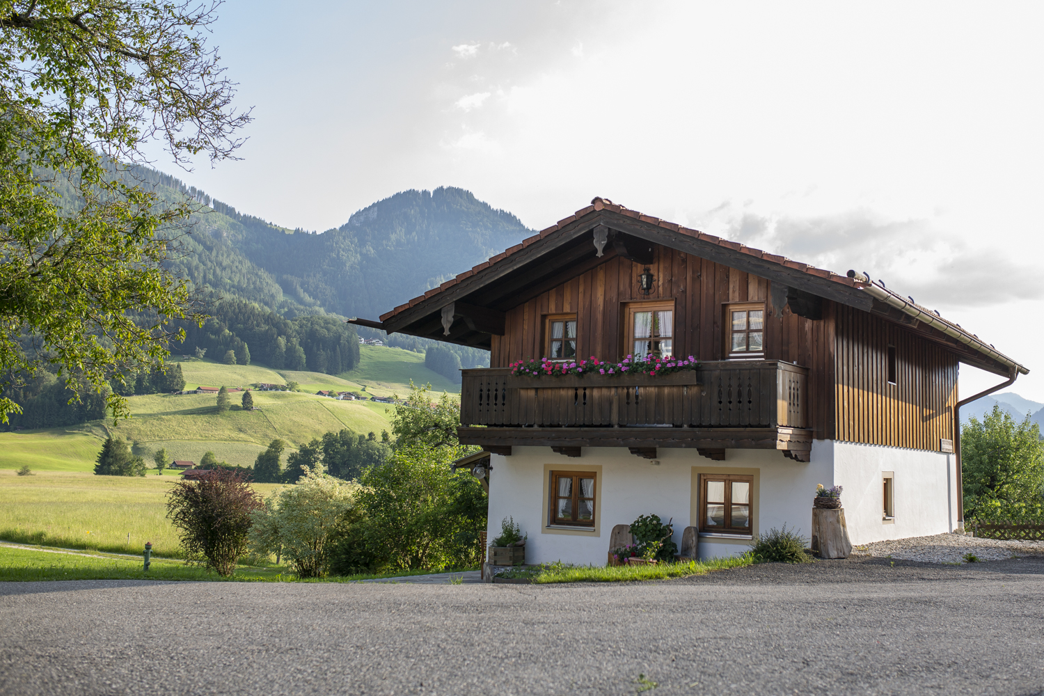Unser Bio-Bauernhof liegt ruhig, südlich der Ortsmitte von Ruhpolding mit freiem Blick auf Wiesen und Berge der Voralpen, inmitten intakter Natur.