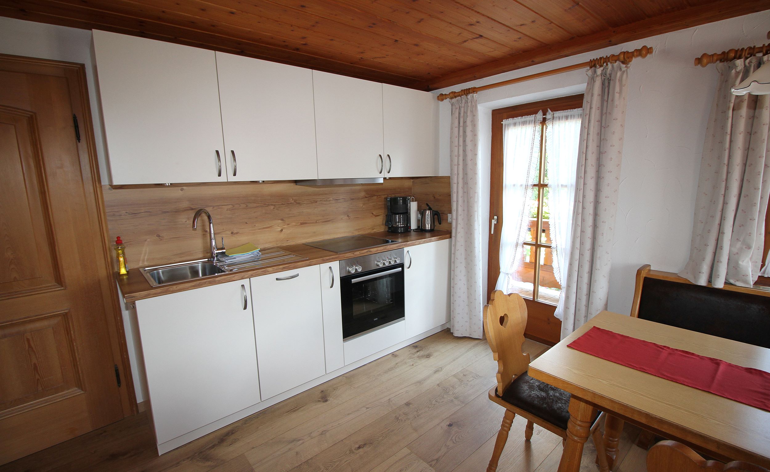 Die Ferienwohnung liegt im ersten Stock des Bauernhauses und besitzt einen Südbalkon mit traumhaftem Bergblick.