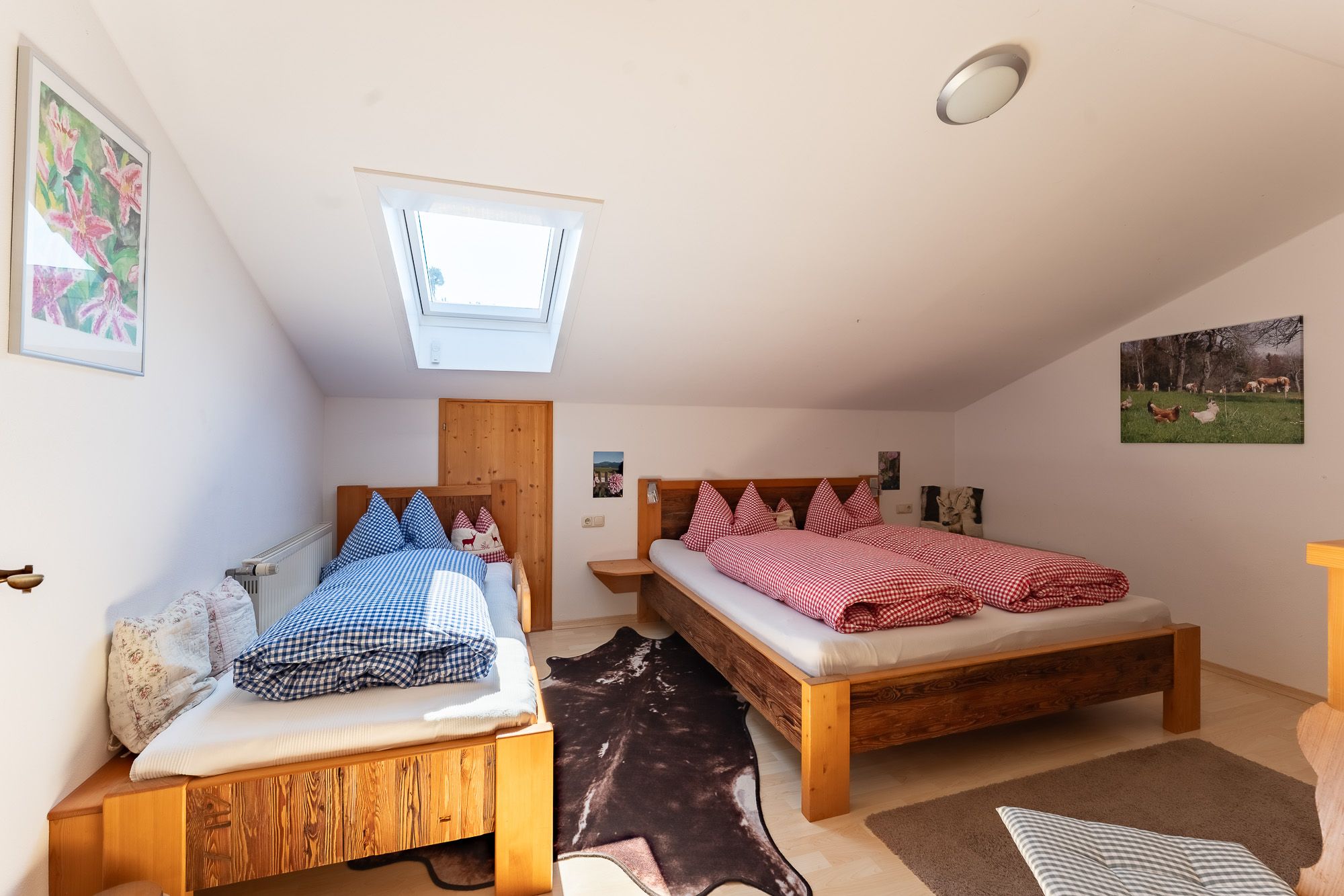 5 Räume, davon 2 separat gelegene Schlafräume, 5 Betten, 1 Schlafcouch.Genießen Sie traumhafte Urlaubstage in unserer geräumigen Ferienwohnung Feichteck mit komfortabler Ausstattung.Die Wohnung hat einen eigenen Eingang, eine gemütliche Wohnküche sowie 2 separate Schlafzimmer mit Balkon und herrlichem Bergblick! Weitere Details zur Wohnung finden sie unter den Ausstattungsmerkmalen.Jeden Morgen (außer sonntags) kommt der Bäcker zum Hof.Haustiere in der Wohnung pro Tag 8 Euro (nur nach Absprache möglich!)Es würde uns freuen, Sie als Gast bei uns auf dem Adlerhof begrüßen zu dürfen. Ihre Familie Stuffer - - KURZURLAUBER AUFGEPASST: Bei einem Kurzaufenthalt unter 4 Nächten verlangen wir einmalig einen Zuschlag von 80,- Euro